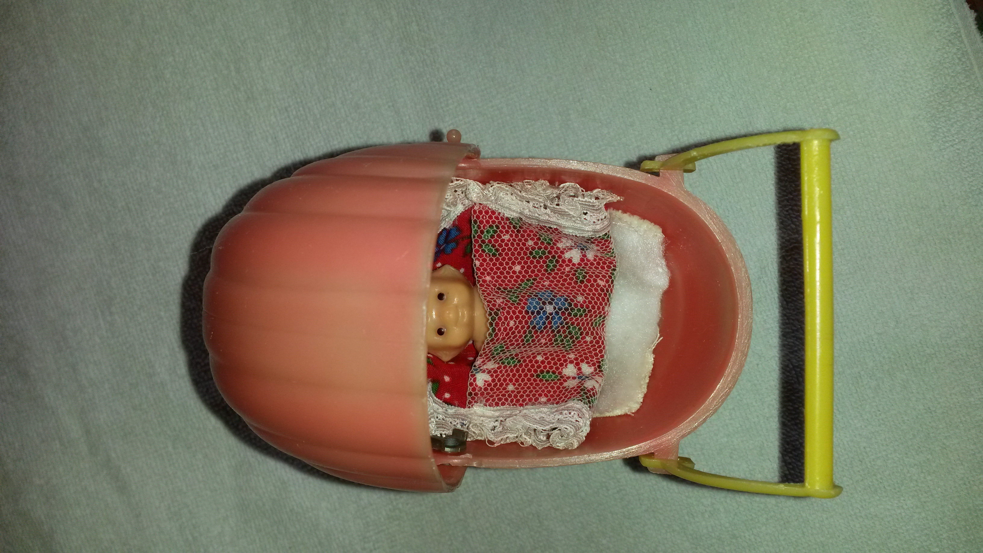 Я в отпуске, готовлюсь к строительству большой печи на даче. Сдвигаю мебель, разбираю вещи. И вот какой раритет я нашла) Игрушка дочери коляска с пупсом, уже не помню, откуда привезенная. Привезла домой, отмыла, постирала и скорей показываю)