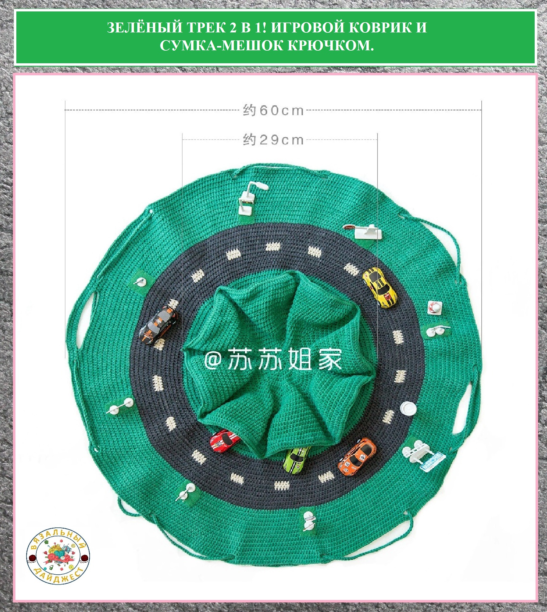 Источник: канал ВЯЗАЛЬНЫЙ ДАЙДЖЕСТ: https://zen.yandex.ru/media/id/5fbe05c57f6165482cd0de21/zelenyi-trek-2-v-1-igrovoi-kovrik-i-sumkameshok-kriuchkom-60a8e59ef264e45e6cb9dc5f