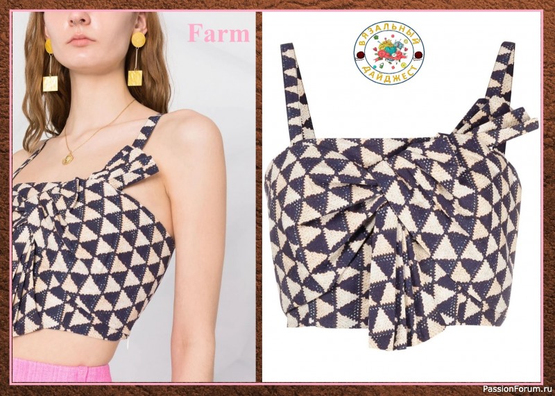 Он очень необычный. Мне нравится само полотно и бант спереди, а сам топ я бы сделала по-длиннее и с расширением к низу — колокольчиком.