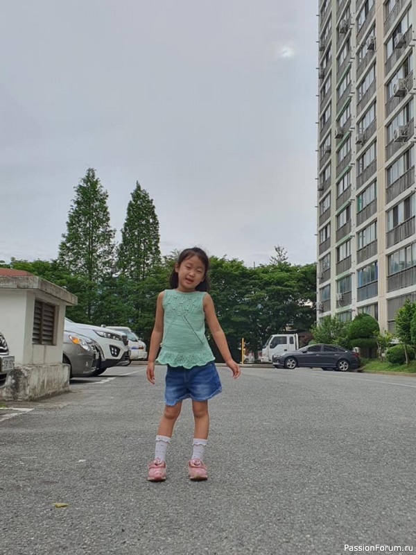 Очень симпатично! Мамы вяжут-деткам радость! Цвет очень нежный и очень вашей доченьке подходит. Моделька интересная, мне понравилась! Задорная попрыгунья у вас доченька, подвижная, весёлая.
