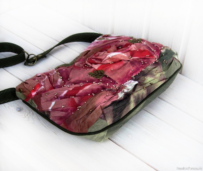 Всем доброго времени суток и крепкого здоровья!!!!Ну и,конечно,творческого настроения! В наших северных широтах наступило лето,причем май аномально жаркий,наверно, так у всех))) А мне никак не жить без экспериментов))) Сумочка "Роза" -давно хотелось сделать такой вариант сумочки для лета! Лето — пора солнца и отдыха, когда хочется добавить в свою жизнь чего-то нового и яркого. И такая простая вещь как сумка,(а особенно такая непростая, как эта))) способна внести новое дыхание в гардероб. Размер 27х20х7, драпировка, вышивка бисером, металлические элементы, застегивается на кнопку,внутри два кармана,ручка регулируемая)ткань мягкая и легкая(но посажена на каркас) -поэтому извела почти флакон водо-грязе-отталкивающего спрея для защиты)Сумочка была сразу куплена и я даже уже получила фото из жизни,ниже тоже его размещу)