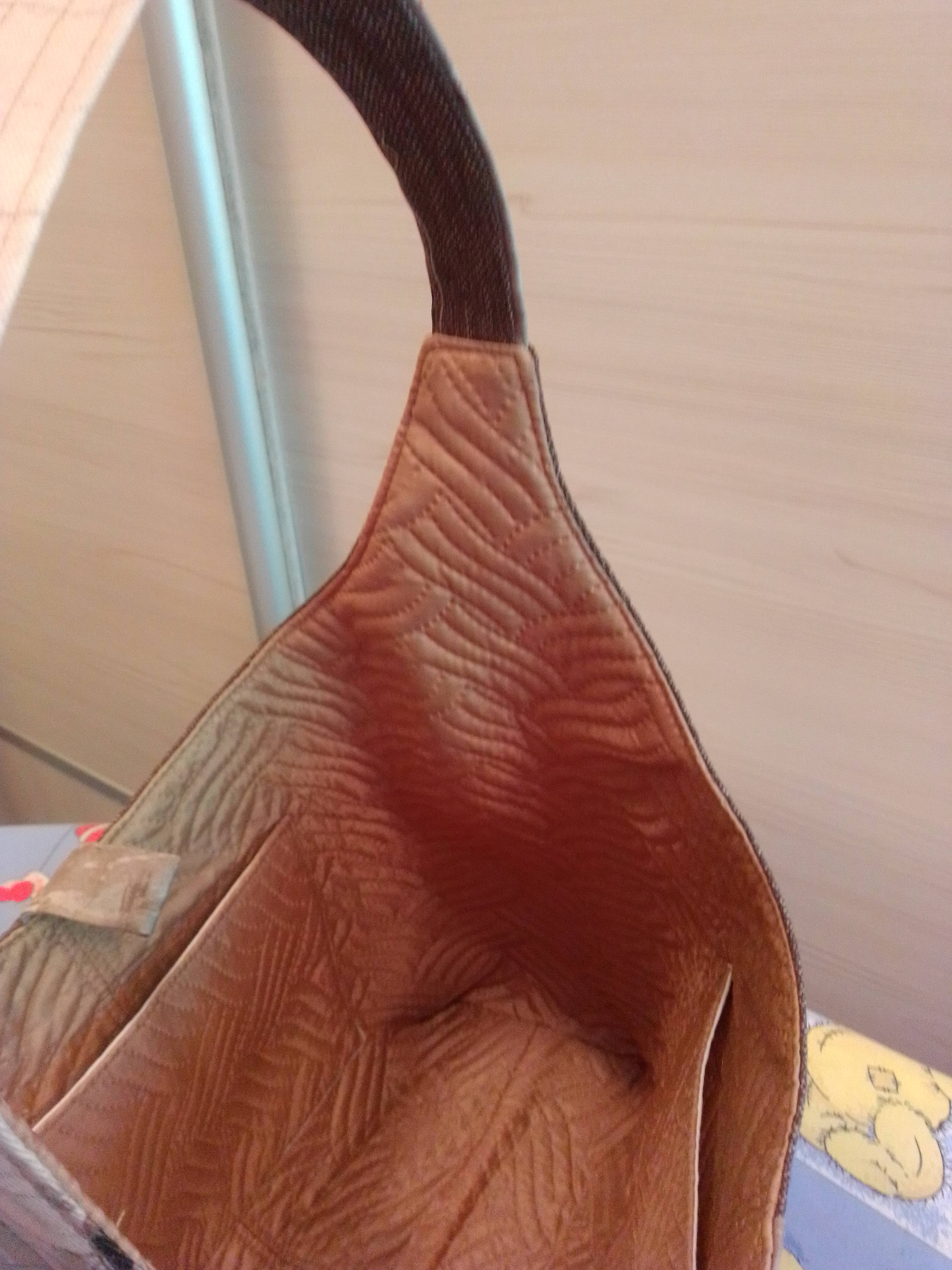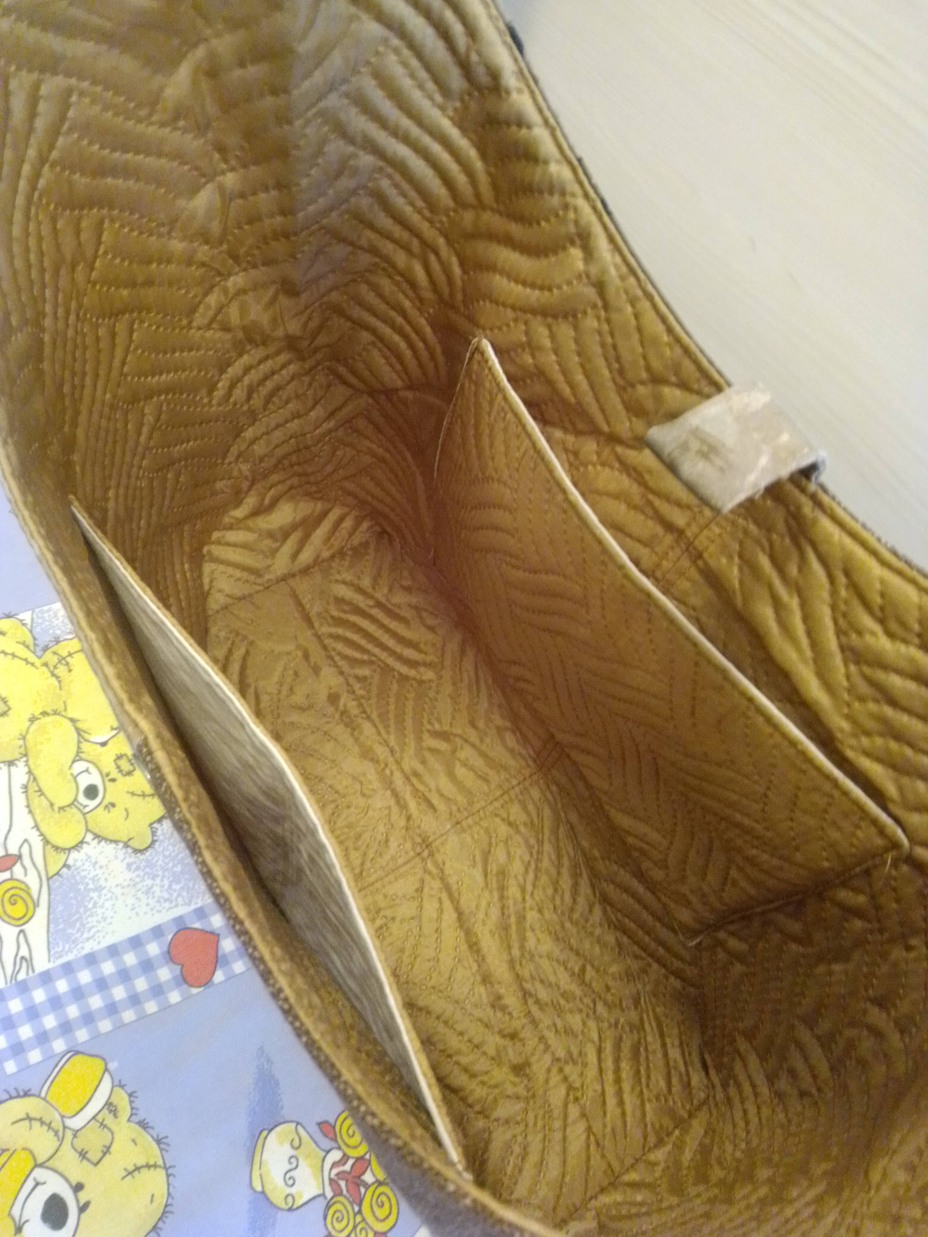 Это уже готовый подклад на синтепоне. Он подходит по цвету и держит форму сумки Смотрится очень прилично. Люблю хороший подклад у сумочек.