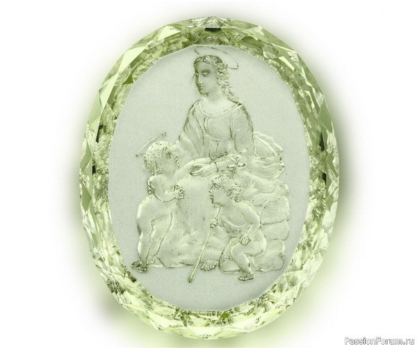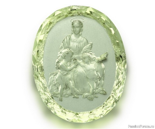 Инталия на берилле "Мадонна со щеглом", интальер Владимир Попович, размер 25,5х20,3х3,7 мм.