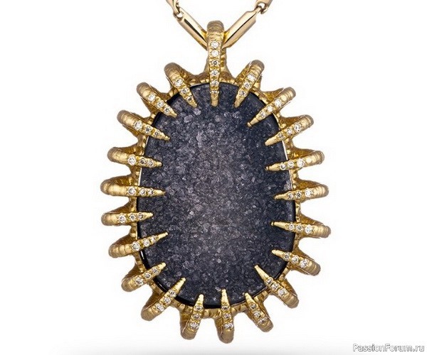 Подвеска "Галактика". Желтое золото, бриллианты, кварцевая друза.