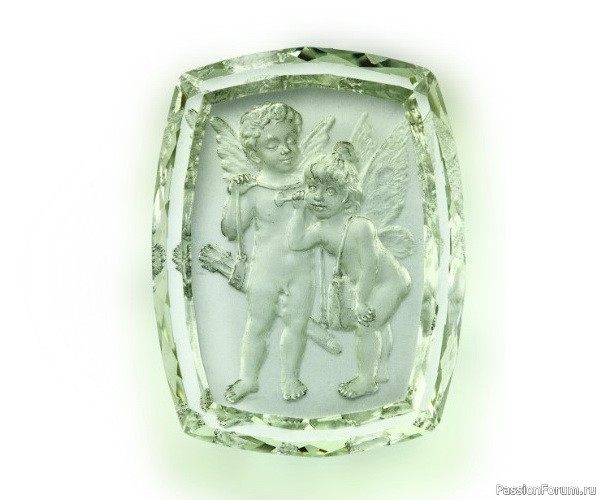 Инталия на берилле "Психея-врач и Амур", интальер Владимир Попович, размер 28х21х5 мм.