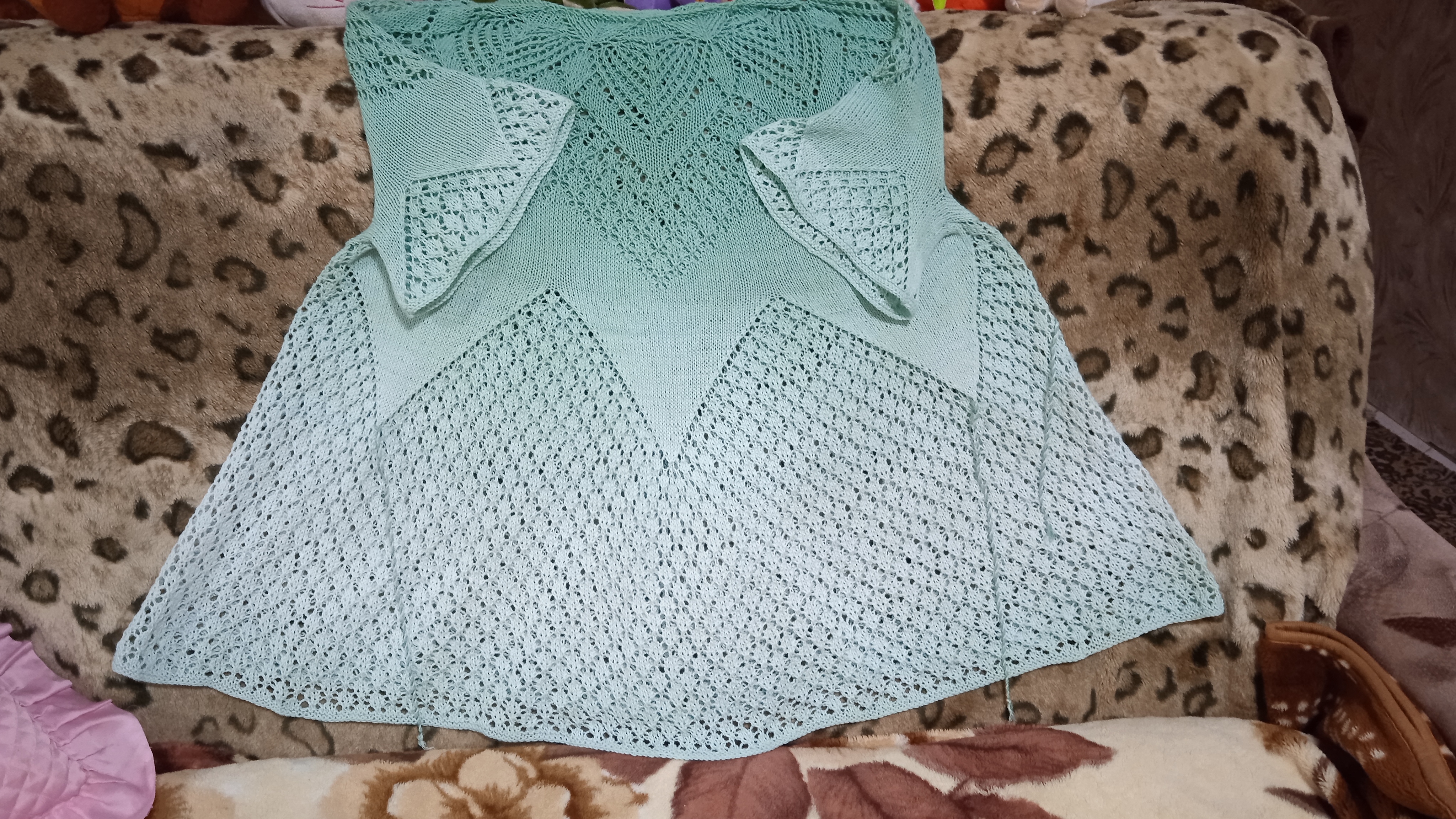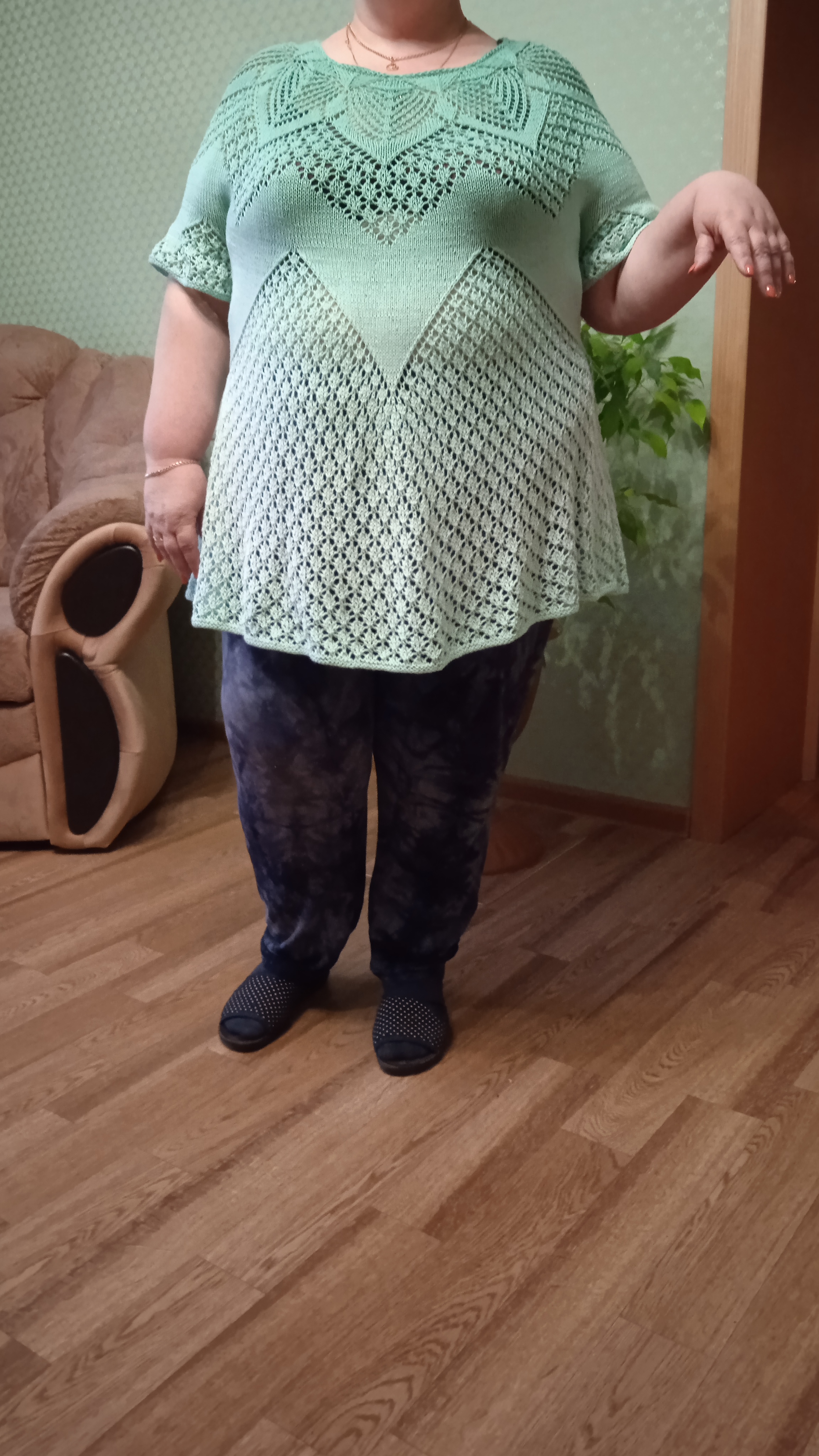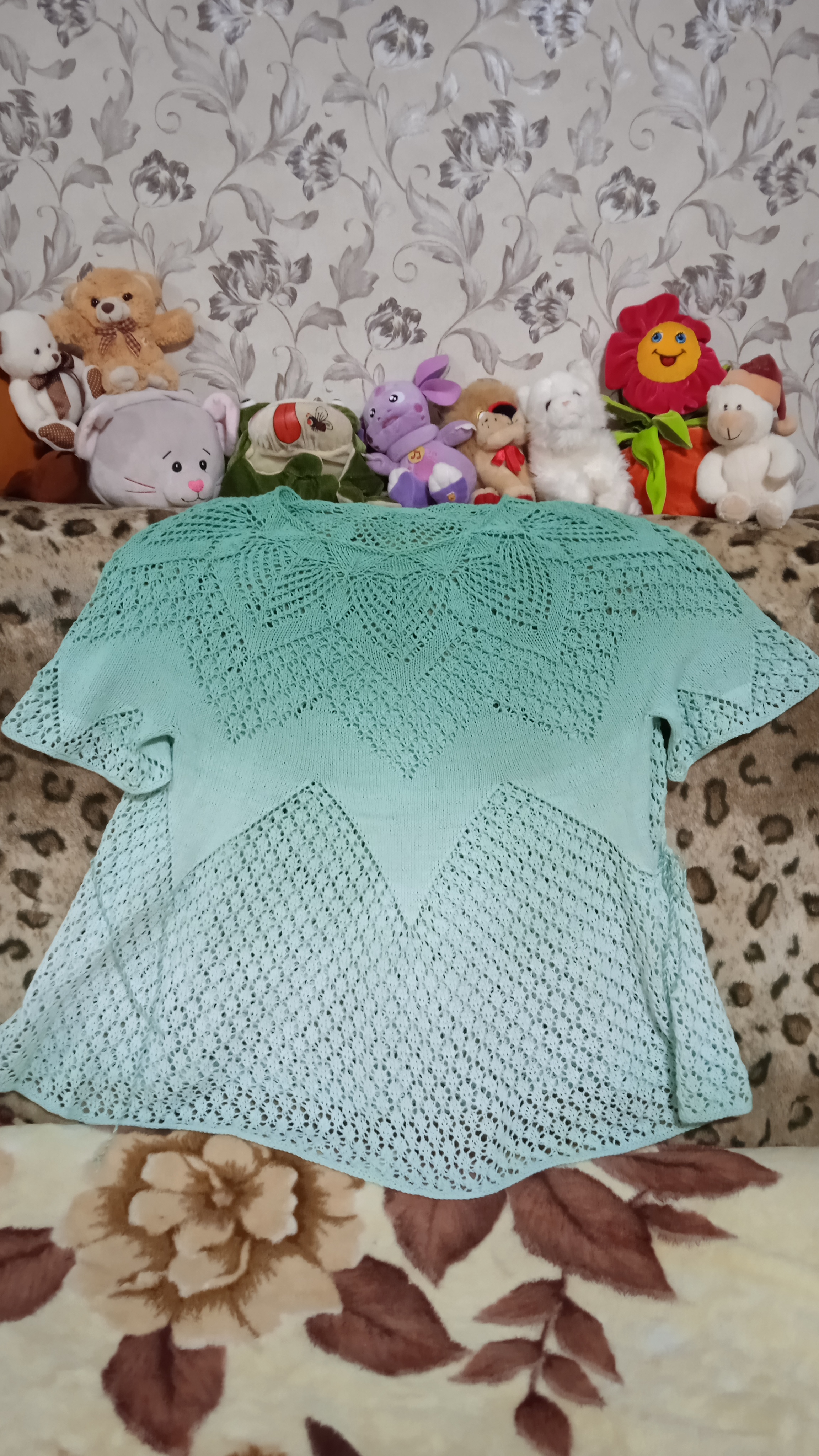 Здравствуйте, мои дорогие! Спешу похвастаться новой работой. Связана для одноклассницы и любимой соседки из Ализе белла омбре батик 100% хлопок в 250г-900м спицами 3,0 по кругу. Она очень довольна, только фотографироваться застеснялась
