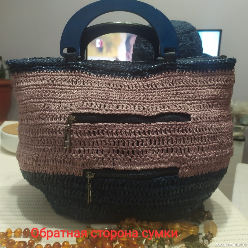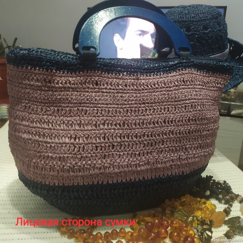 От шляпок осталась раффия. Я докупила ручки и донышко и "сваяла" к этим шляпкам сумку. Поскольку, сумка связана из раффии цветов шляпок, то она идет в дополнение к любой из них.