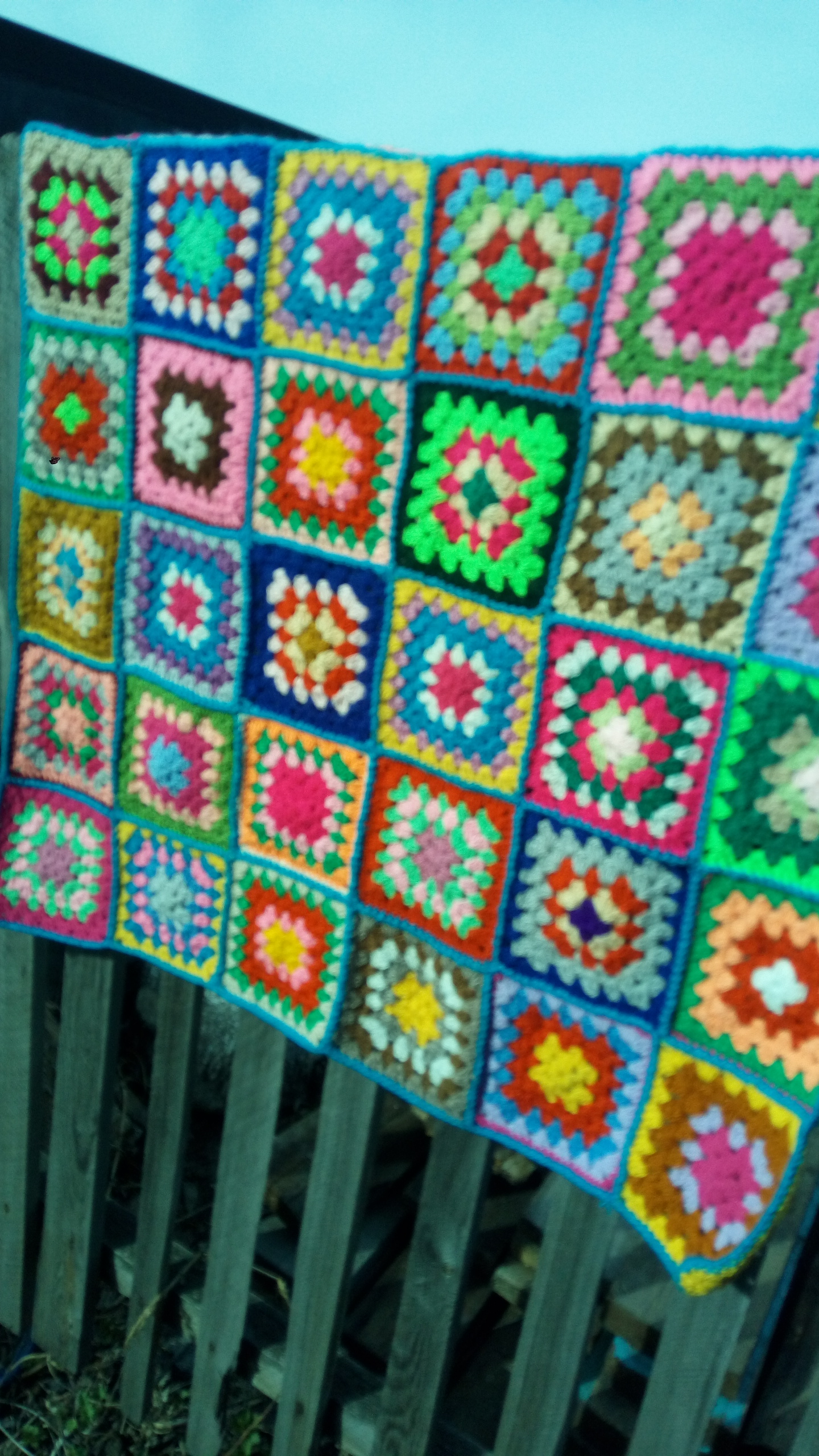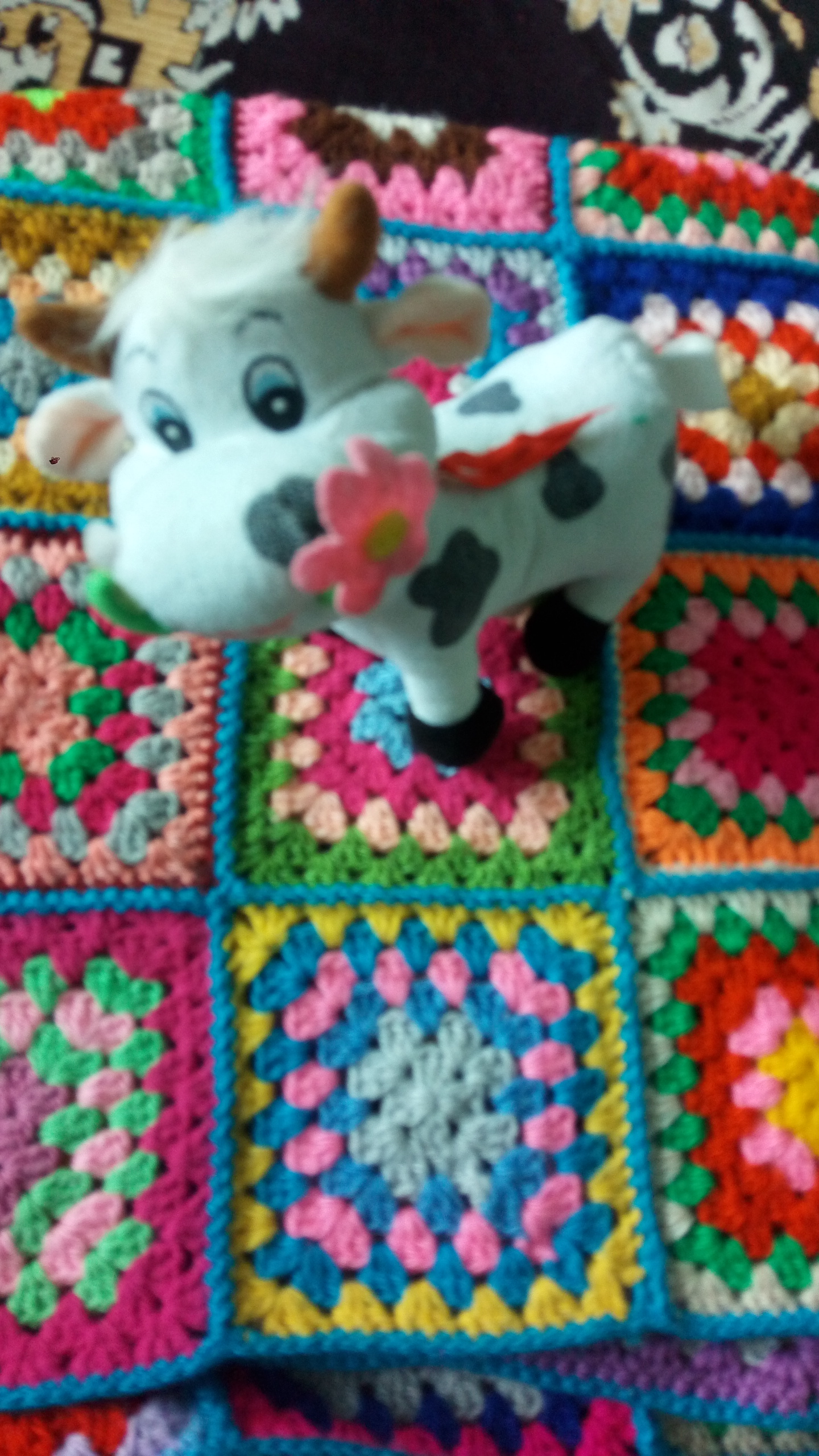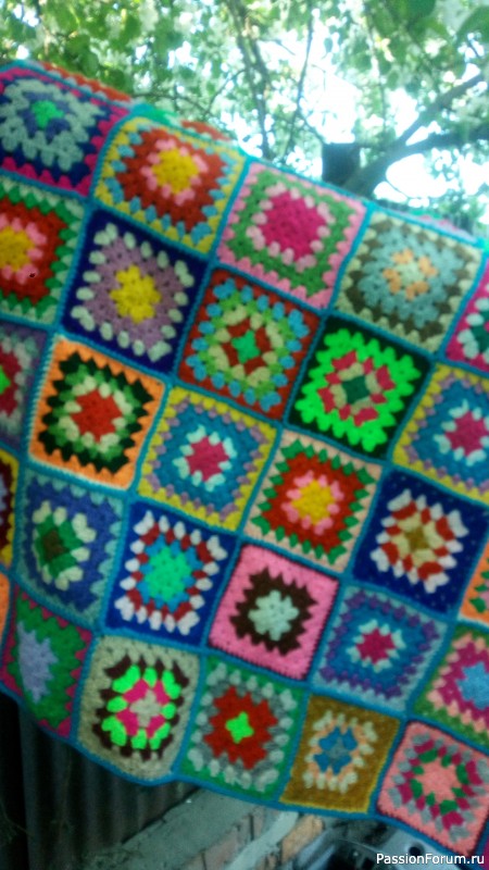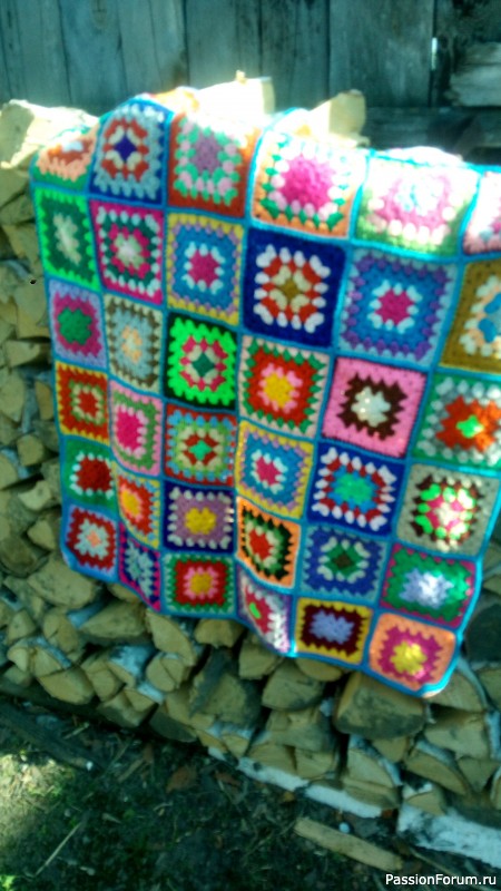 Здравствуйте девочки,на улице слава богу лето,но лето нынче какое то непонятное,днём жарко,ночью холодно,на огороде ничего не растёт,даже сорняки,земля стоит почти голая.Печально.Сегодня я вам забежала,чтобы показать свои весенние работы по вязанию.Долго болтать не буду.Сразу за дело,связался плед для родственницы,скоро пополнение у них,думаю подарок будет не плохой.Вязала из рыночной пряжи,из акрила,знаю,что он тёплый,антиаллергичный,не вытягивается,не скатывается,катышков тоже не образует,цвет не выгорает,тёплый,потому,как толстенький.В машине можно стирать и яркий,для ребёнка самое то!Можно укрывать ребёнка в прохладные денёчки,хоть в кроватку,хоть в коляску,можно применить,как коврик для игры или на стенку возле кровати.Яркость будет малыша интересовать,со временем даже можно будет изучать цвета.Всё это на радость и на пользу.Вязала обыкновенным бабушкиным квадратом.Размер где-то 80 на 90 примерно.И ещё одна работа,подарок к окончанию 8 класса ,для моей внучки кот толстячок.Всем спасибо за просмотр!благодарю за комментарии,за классы!Пусть у вас будет всё хорошо!Будьте здоровы!