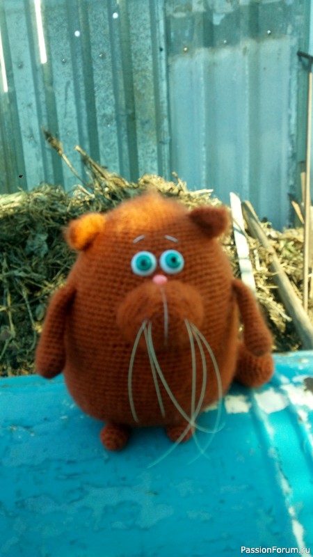 Спасибо большое, в основном я вяжу из детской новинки, от Пехорки.Рыженького кота я вязала из ализе ангора голд, заказывала мохер, пришёл заказ с ангорой, так бы он был бы у меня пушистым, если бы их мохера, к сожалению из ангоры получился гладкошёрстным.