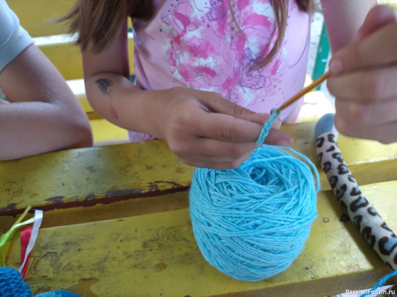 Сегодня 17. 06.21г. прошел первый МК на воздухе на детской площадке дома Николая Зелинского. с 16.00 до 19.00. Время пролетело не заметно. Девочки учились плести из лент и вязать крючком. Их усидчивости можно позавидовать. МК проводила я бесплатно. Все что было сделано дети забрали с собой. Фото сделаны мной только детские руки в работе. Продолжение следует.