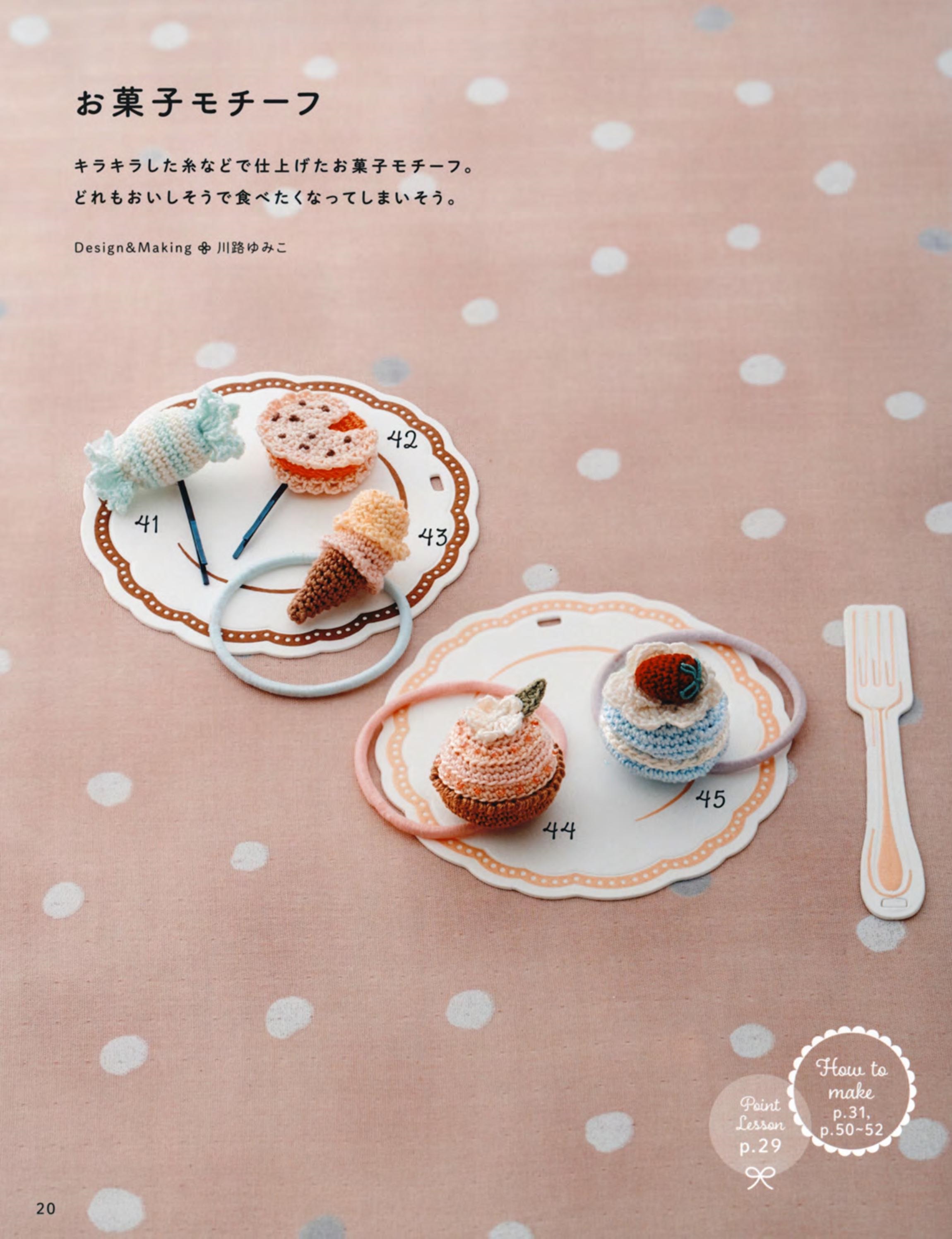 Японский журнал по рукоделию. Каждый номер журнала посвящен определенной тематике. В этом номере вы найдете изумительную вязаную коллекцию аксессуаров для волос – резиночки в форме животных, веночки с красивыми розами, ажурные повязки. К каждому проекту даны качественные схемы и шаблоны. Любая рукодельница без знания японского языка сможет связать любую понравившуюся вещь.