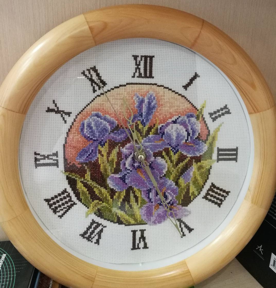 А вы знали, что зимой ирисы не растут? Так вот, не верьте! Если очень хочется, то ещё как растут! Часики вышивались в другой город, в подарок на заказ большой любительнице ирисов) /схема из интернета/