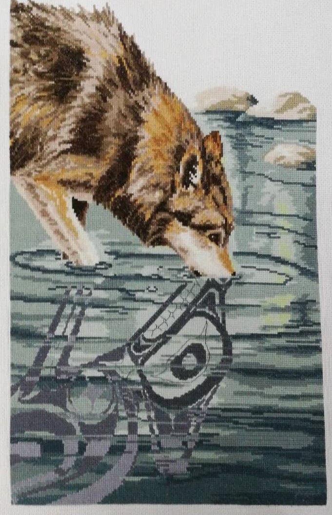 Любовь к бегающим, ползающим, плавающим и летающим у меня с детства. Но.... С детства я ещё и аллергик. И вот, по принципу, не можешь завести дома любимую животинку, заведи её картинку! То есть, волка в стиле "тотем". Схема взята у трудолюбивых китайцев.