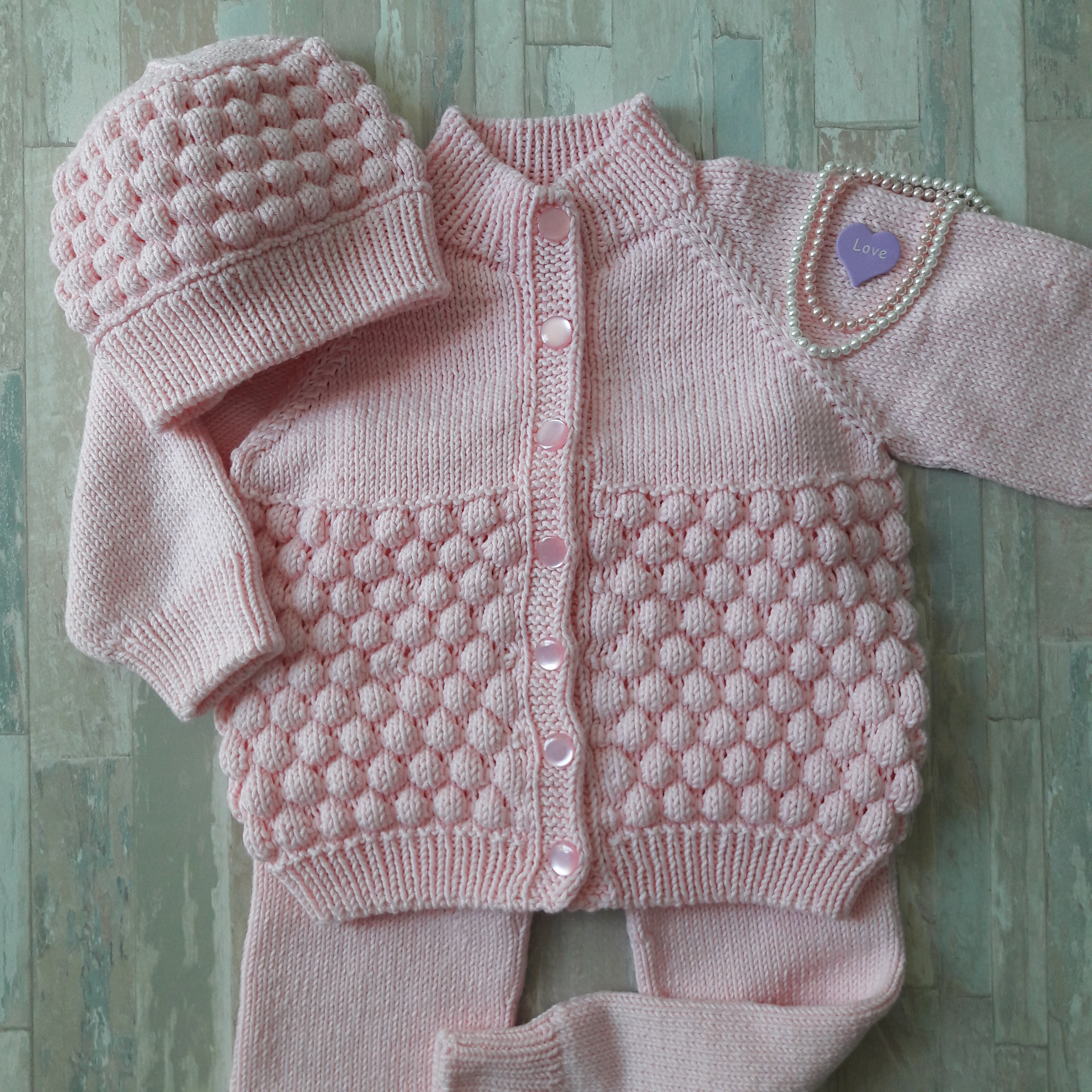 Мои любимые пузырики! Я вязала комбинезон таким узором. А Ваш комплект получился очень нежный и красивый. Вязка — супер! Руки золотые!