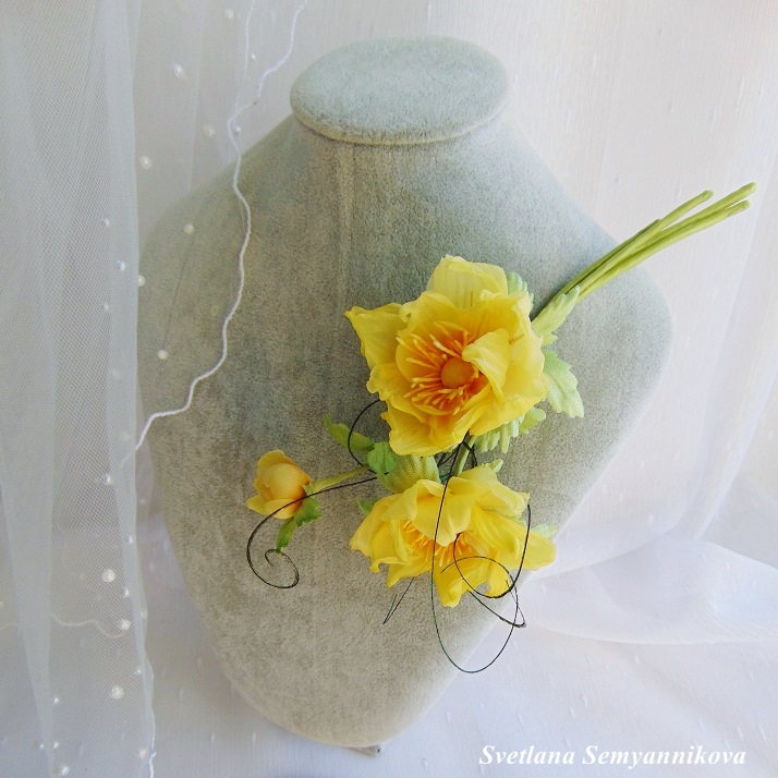 Все изделия - полностью ручная работа, от раскроя белого шелка - до сборки целого букета / аксессуара..