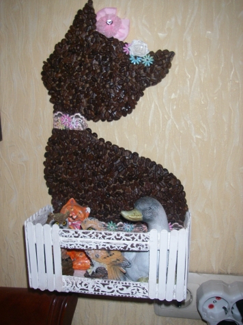 Подсмотрела. конечно, в инете, такую кошечку с заборчиком и захотелось сделать зоопарк для зверушек, чтобы не грустили в одиночестве.