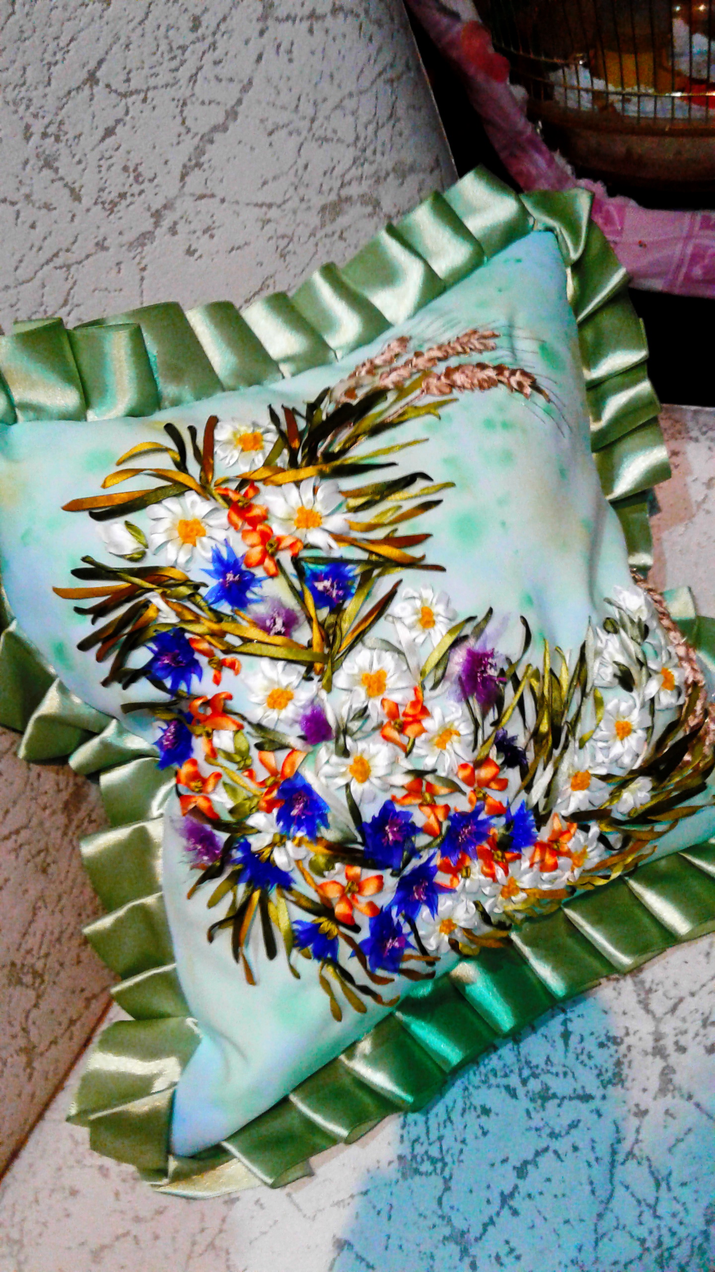 Думочки, вышитые лентами