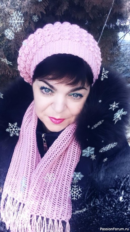 . Сначала утеплялась сама, теперь связала вот такой берет для своей коллеги. Узор называется "Гусиные лапки"