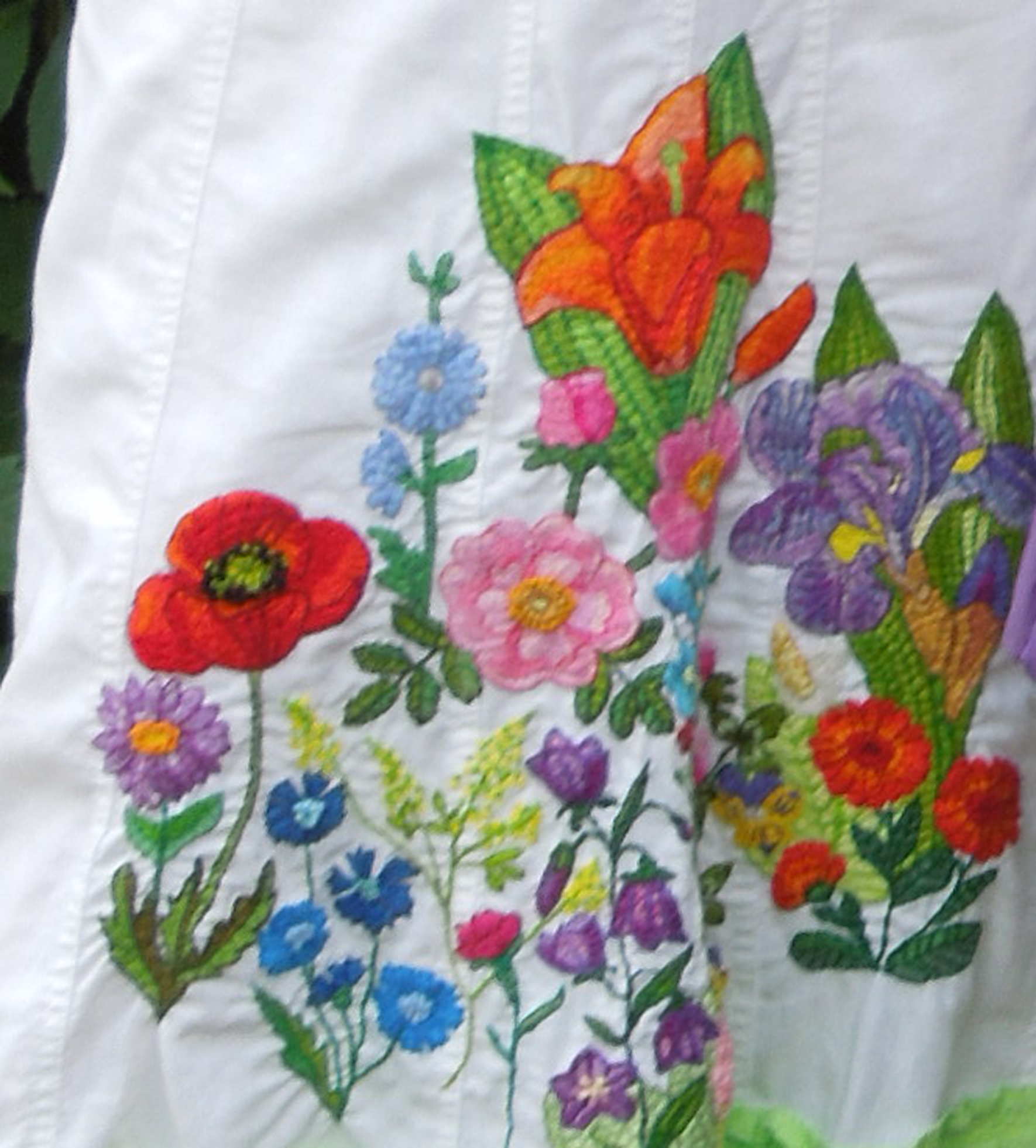 На фото представлена не только вышитая бохо-юбка, сшитая мною из тонкого белого и зеленого льна, но и вязаный крючком хлопковый цветной кардиган. Детали кардигана будут в другом посте.