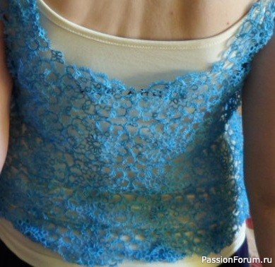 Вот такой топик у меня получился в технике фриволите, двумя челноками. Нитки Altin Basak, турецкий ирис. Всего ушло 5 клубочков. Плела в течении двух месяцев