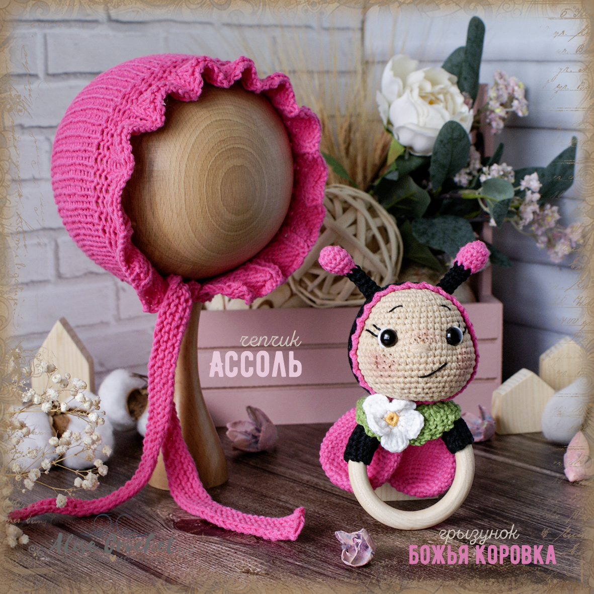 ✔ размер: чепчик 3-6 мес., грызунок 14 см