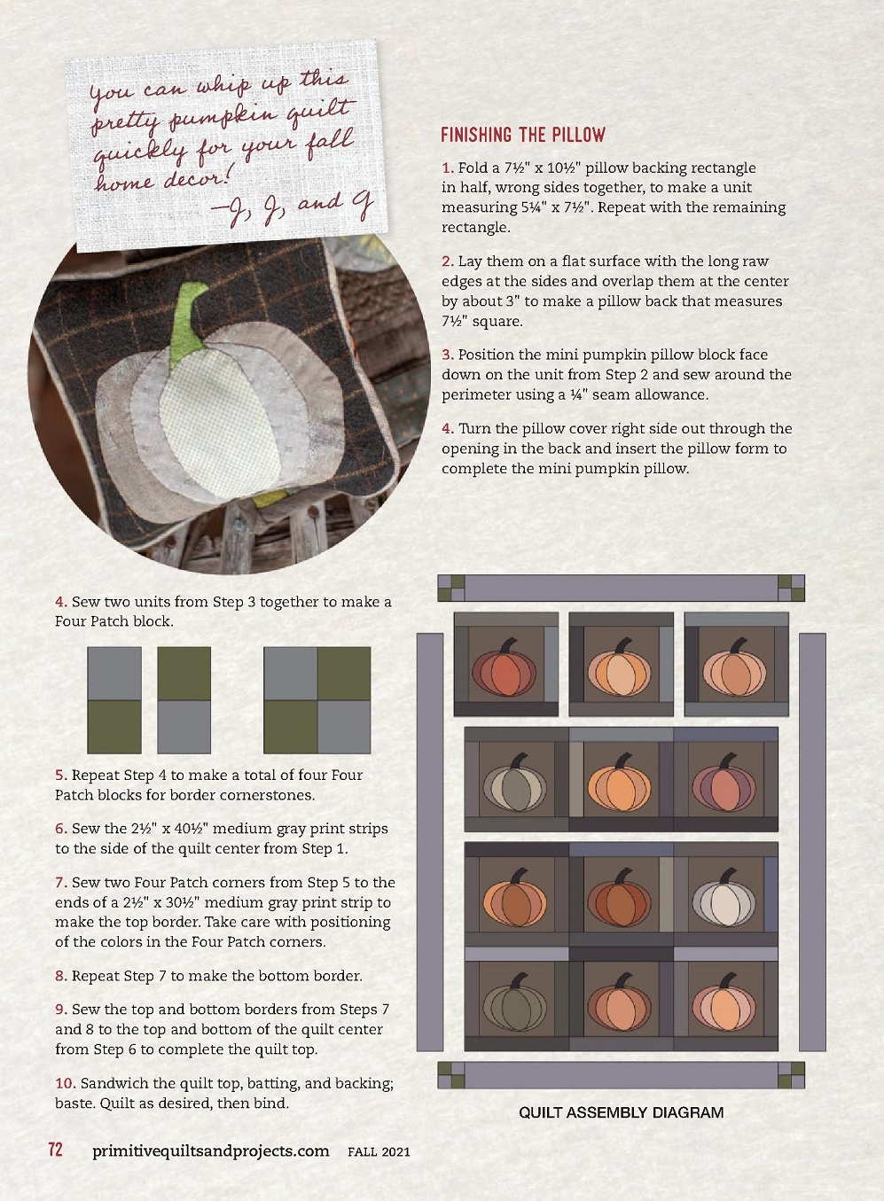Журнал "Primitive Quilts and Projects - Fall" 2021. Схемы и выкройки