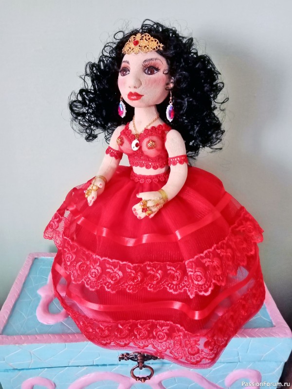 Вера, Вы уже знаменита)) Я же говорила, что Ваши куклы становятся узнаваемы. А теперь, даже читать не надо чья работа)) Восточная красавица, колоритная, роскошная девушка. Понравилось, что одежда съёмная, при желании можно менять наряды. БРАВО!!!