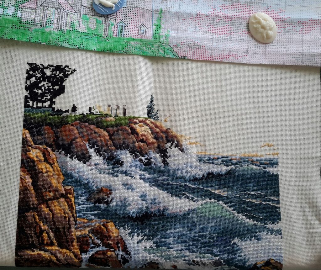 Для любителей больших наборов для вышивания обзор сюжета от Dimensions с маяком и морем. Подробный обзор с фото смотрите в моем блоге о вышивке.