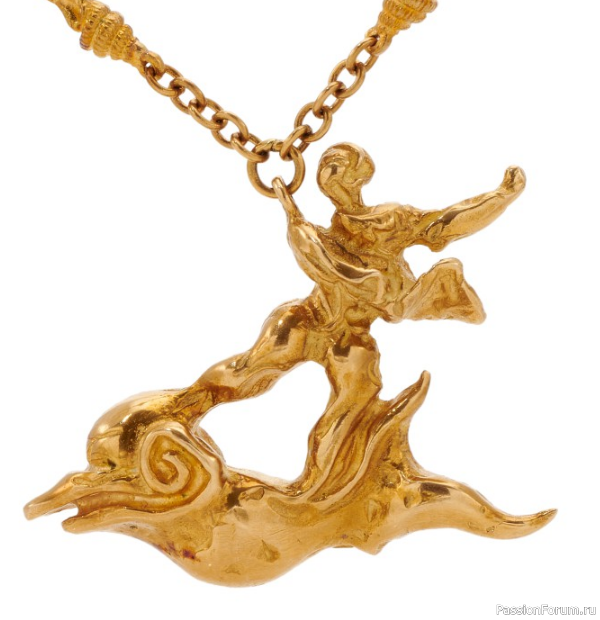 Золотое ожерелье «EL HOMBRE Y EL DELFIN» с изображением человека на дельфине на цепочке с чередующимися ракушками, Сальвадор Дали