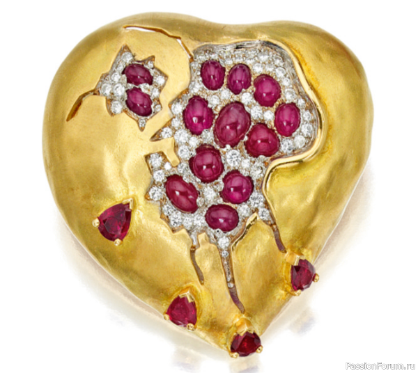 Золотая брошь «Гранатовое сердце» с рубинами и бриллиантами, выполненная Хенриком Кастоном по дизайну Сальвадора Дали