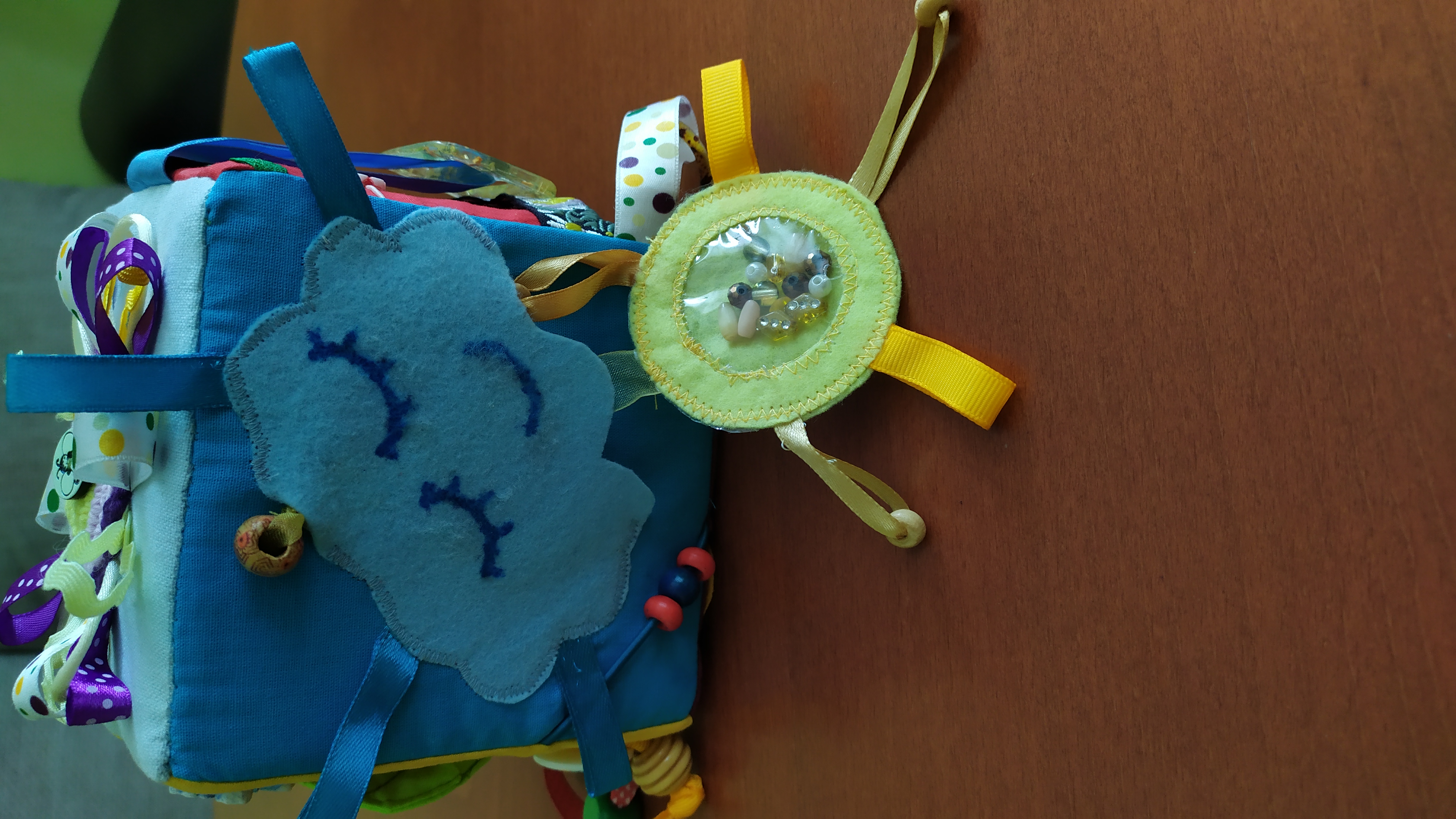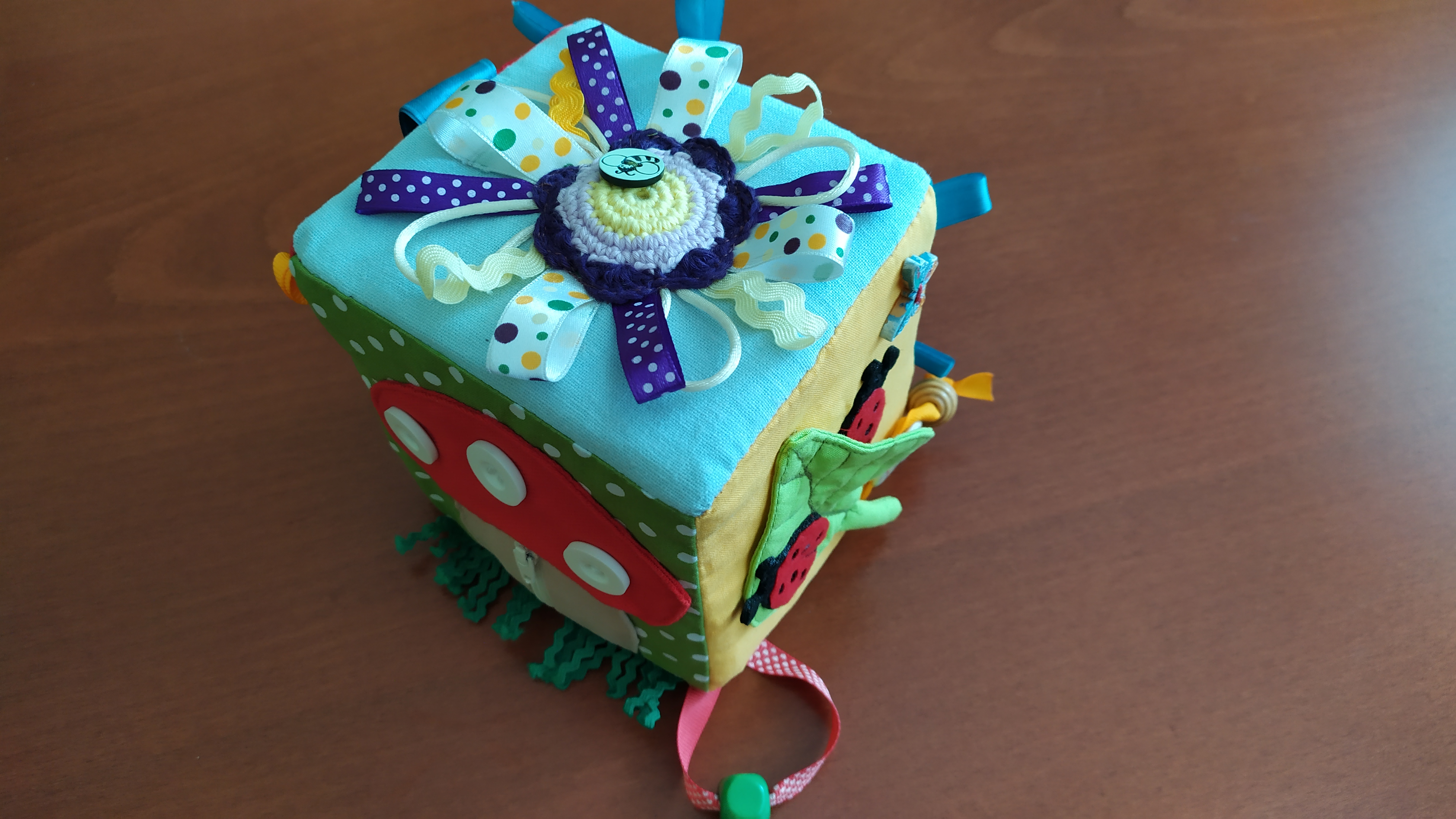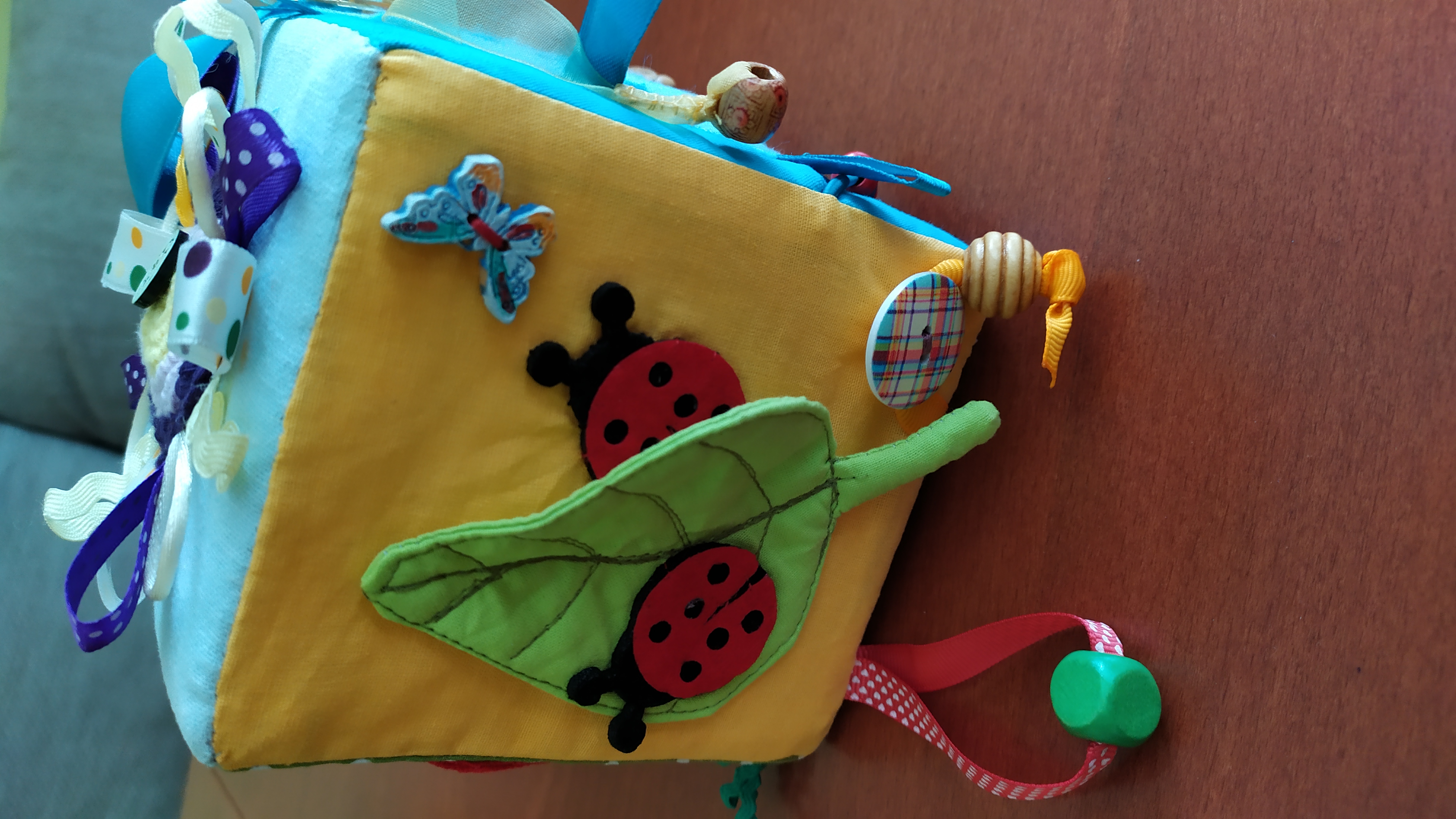 Рени, браво! Я в неописуемом восторге от кубика! Каждая сторона очень интересная, занимательная! Все так аккуратно выполнено, красиво, и сколько фантазии в этом кубике! Думаю, что внуку не будет скучно, когда он будет этот кубик исследовать. Там столько красивых, ярких насекомых — червячок, божьи коровки, бабочка....