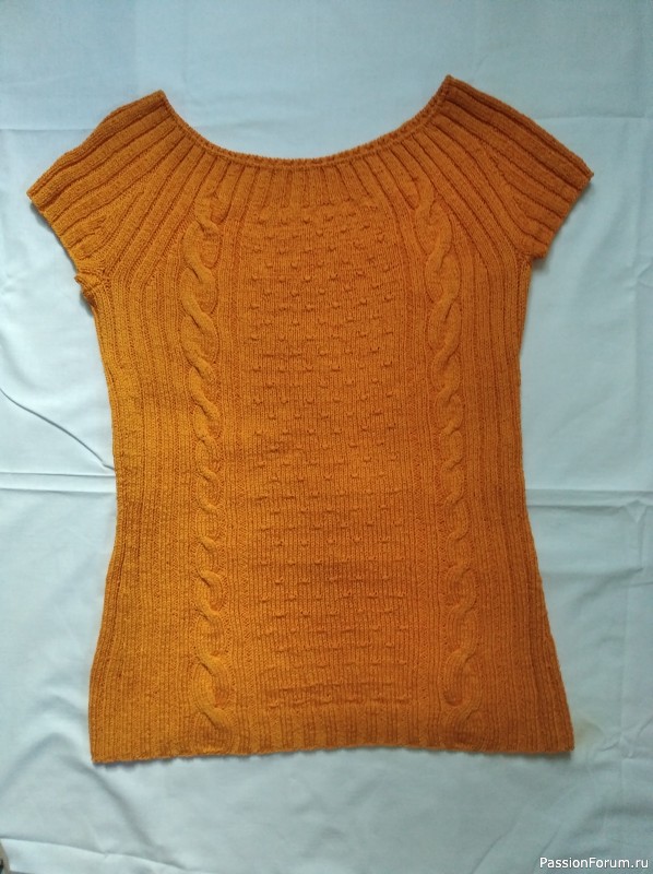 На улице похолодало, а я с солнечным топиком. Увидела я на просторах инета топ, беленький, необычный. Решила связать дочери. Купила пряжу мерсеризованный хлопок в бобине, итальянская пряжа. Но белый мы не захотели. Дочь увидела в магазине яркую оранжевую пряжу и захотела именно такую. Описание есть, если кого-то заинтересует,то выложу на страничке. Но сразу скажу, что я вносила изменения по ходу работы. Ну и ,конечно, опять без швов. Хоть реглан у нас снизу, но я старалась все сделать без швов, не люблю я их, особенно на летних вещах. Дочь носит вещь с удовольствием