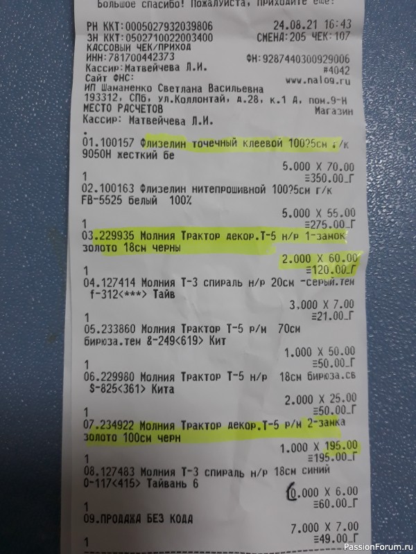 2. 3 метра подкладки по 90 рублей.