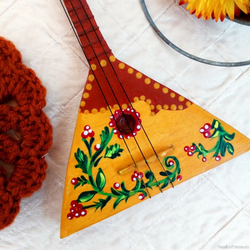 … с упорством говорила, ну вот ведь даже дека выгнутая… мы аж плакали от смеха… особеннок окгда выяснилось, что дети должны на своих инструментах играть Весне песенку… пришлось быстро прикреплять новогодние бубенцы к палке, чтобы хоть как-то играть весеннюю песенку… Кстати ваша бабалаечка самая традичионная!!! Именно поэтому она крутая!!! рисунка не перебор, сразу ясно, рабочий инструмент, а то я когда искала правильные параметры этого русского народного инструмента… насмотрелась, мама не верила, что бывают расписные балалайки, она была уверена, что на таких не играют, это чисто декоративные