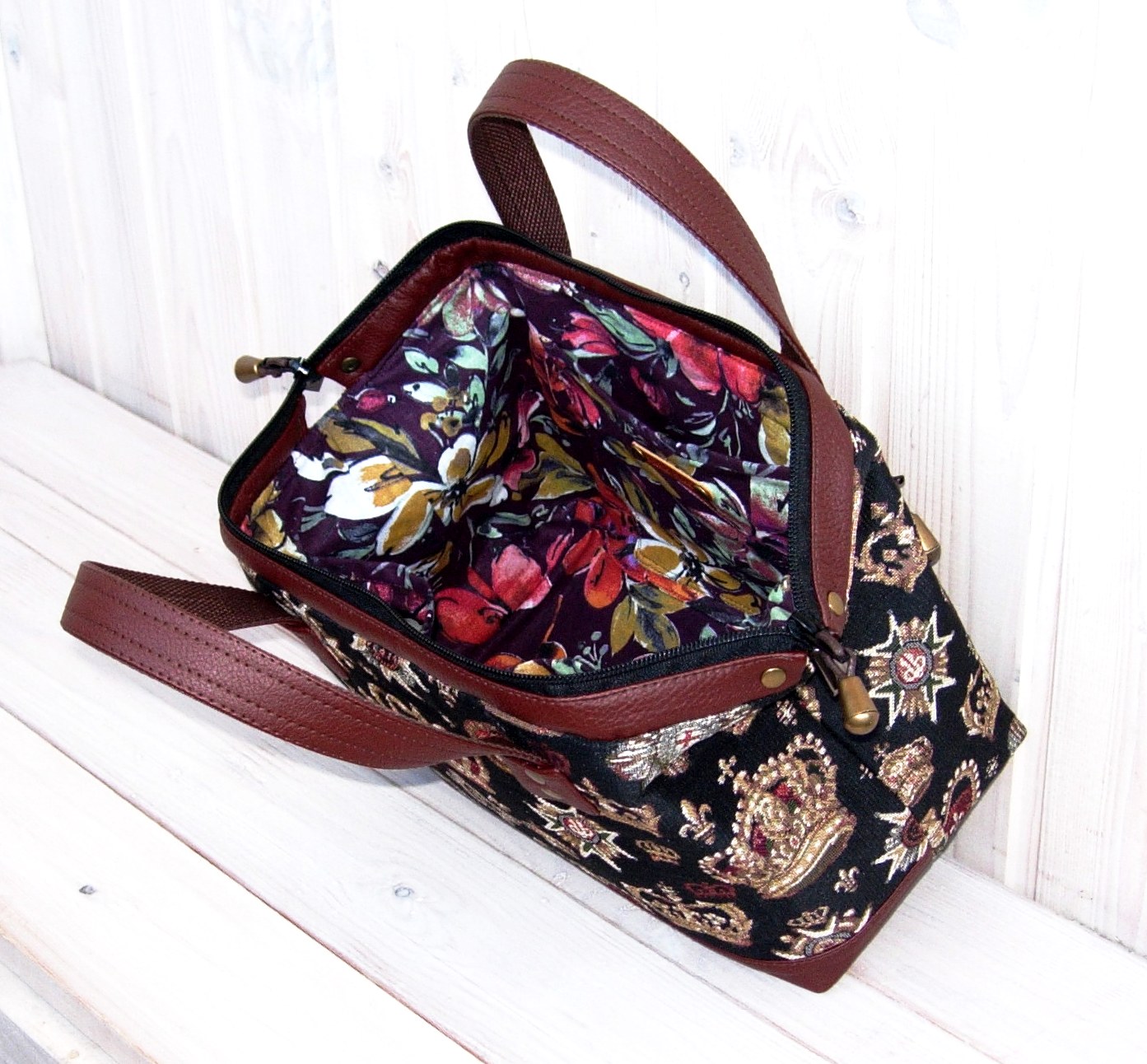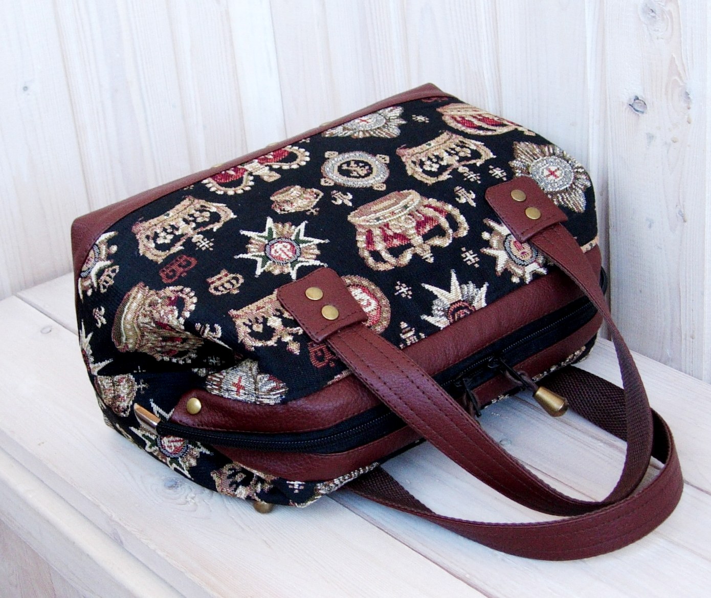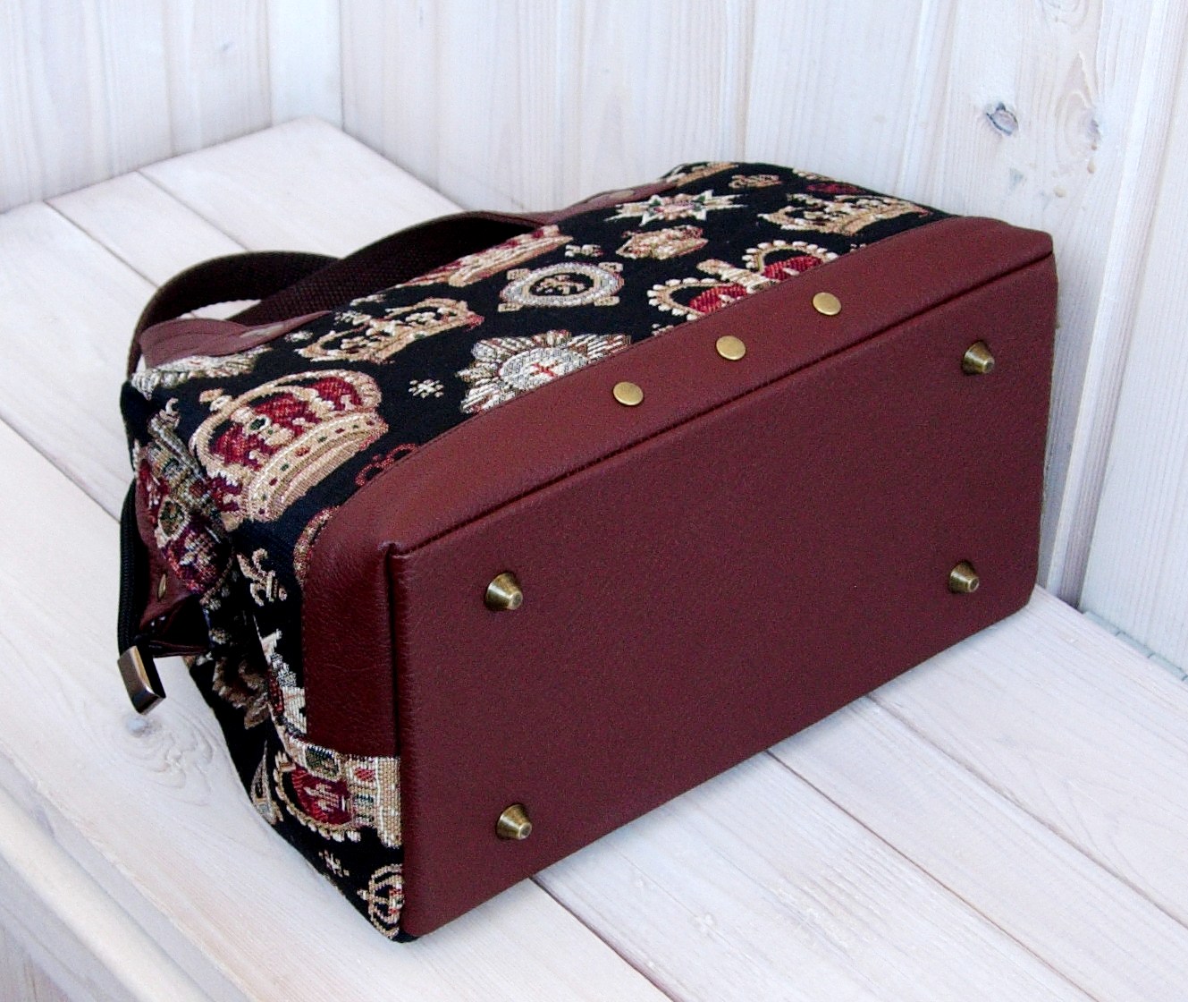 Всем творческого настроения) Вот пробивает меня иногда и на сумки-саквояжи) И всегда они у меня создаются неожиданно, будто кто под руку толкает) Не планируешь, и не думаешь даже -а вот взгляд на ткань упал, образ нарисовался - и не заметила, как воплотила))))Сумка-саквояж "Корона" - очень красивый королевский гобелен, компактная, но вместительная, получилась просто очаровательная! На все повседневные дела) Обработана водогрязеотталкивающим спреем) Размер 20х30х13.Дубляж жесткий, форму держит отлично) На тыльной стороне карман на молнии.внутри три кармана,и сама закрывается на молнию, по верху вставлена каркасная рамка)Она свободна - кто желает -пишите в личные сообщения, пожалуйста)