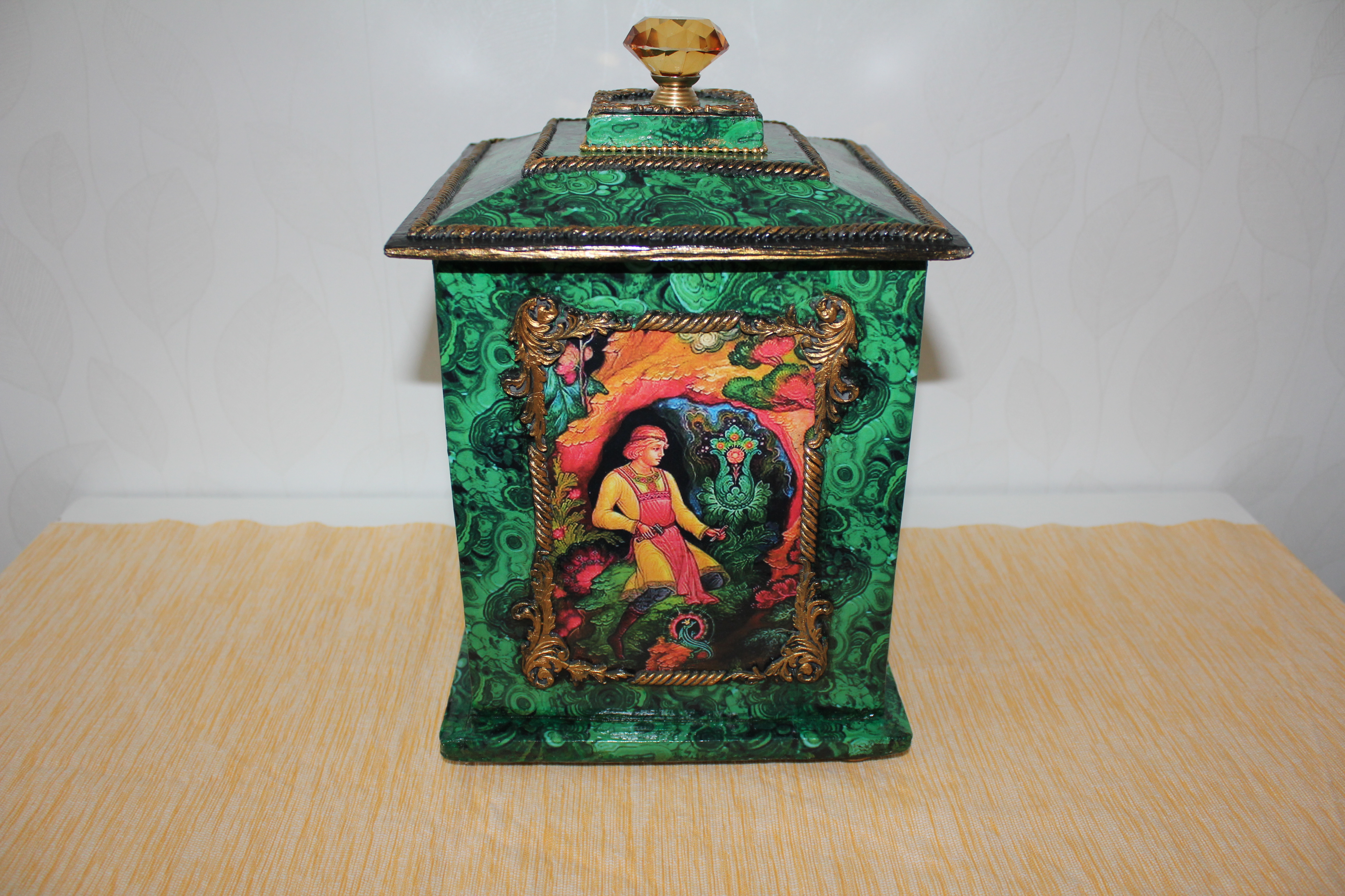 Миная!!! Какая красота! Обожаю малахит.Камень моей малой родины.Сказы Урала. Черная шкатулка очень шикарная А сундук богатый!!! И вместительный!!! Класссс!!!!