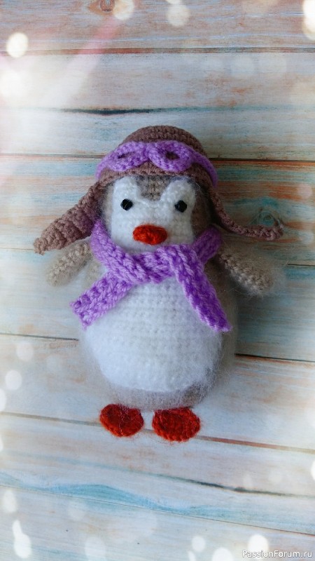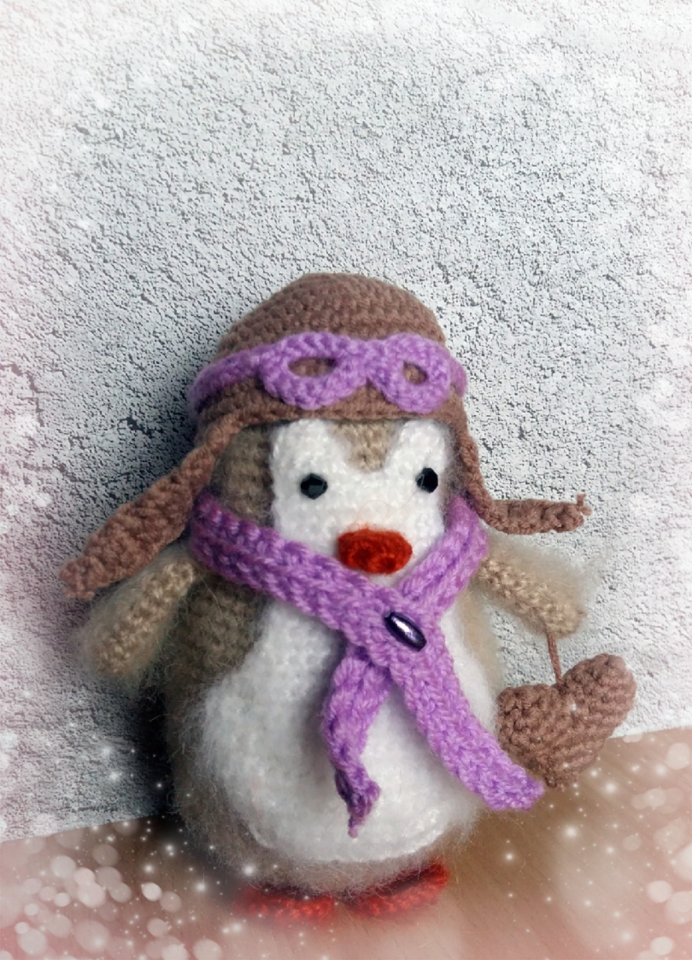 Пингвиненок стоит самостоятельно, шапочка снимается, высота игрушки 13см.