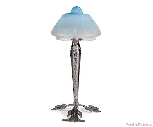Посеребренная фигурная настольная лампа "Femme Fleur" (женщина-цветок), высота 46,5 см, дизайн – Луи Мажорель, стекло - Виктор Салье, около 1900 г.