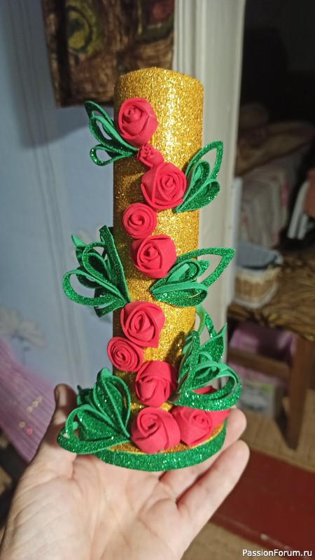 Татьяна, чудесная карандашница получилась, зимой будет напоминать лето