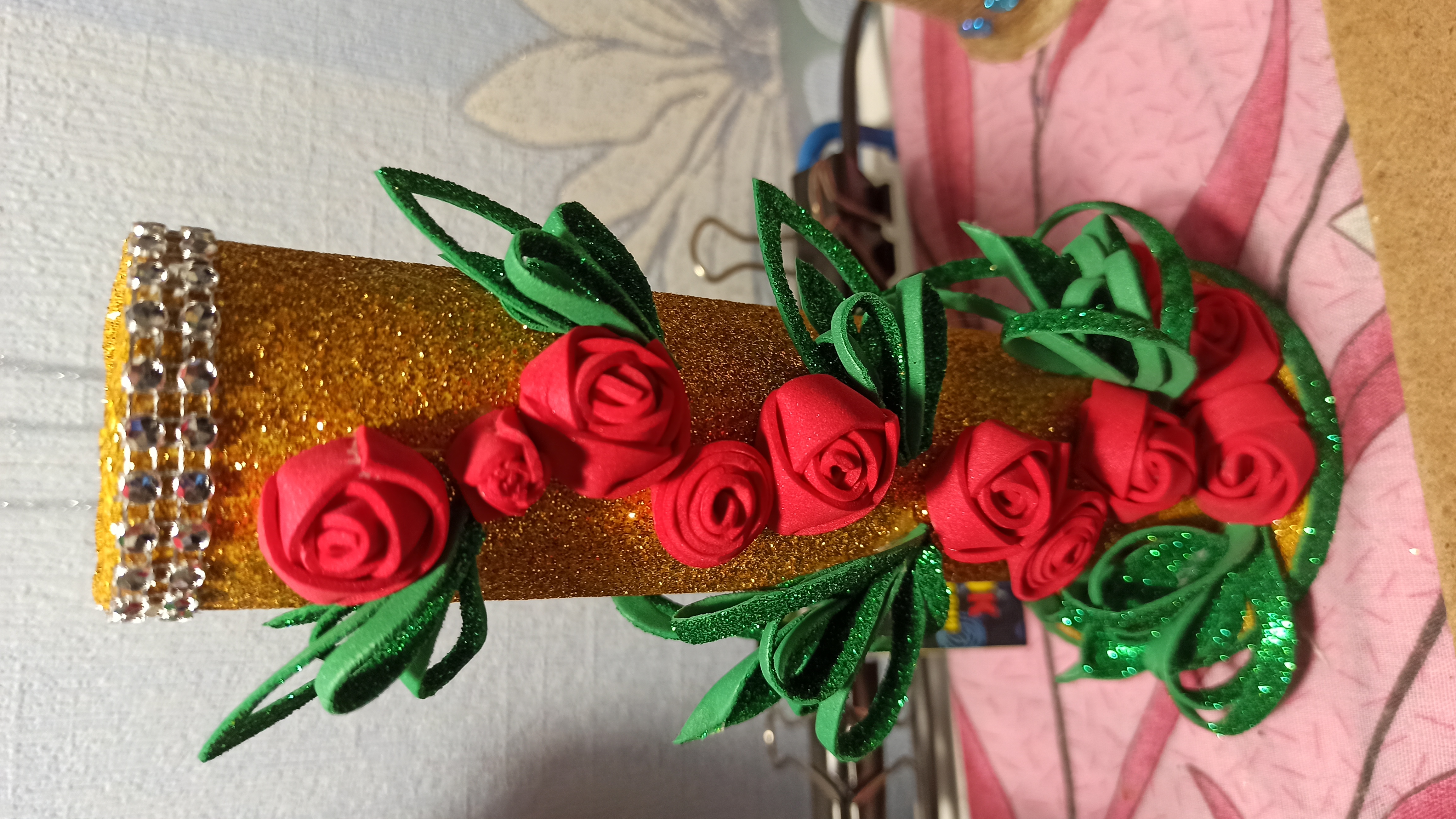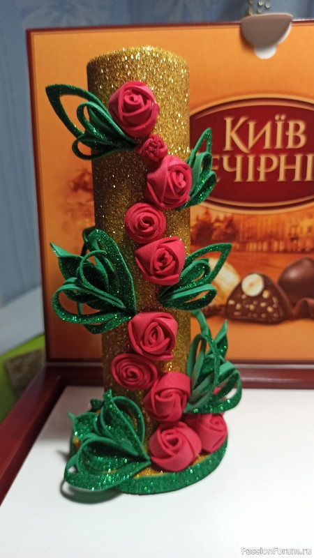 Приветствую всех! Ну вот надаже куда-то девать ручки,карандаши и все те инструменты которыми я пользуюсь при творении своих "творений". Есть простенькие подставочки. Но иногда хочется красоты,вот немножко подколдовала. И у меня обратно получилось розовое счастье.