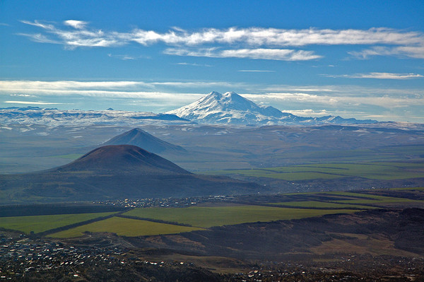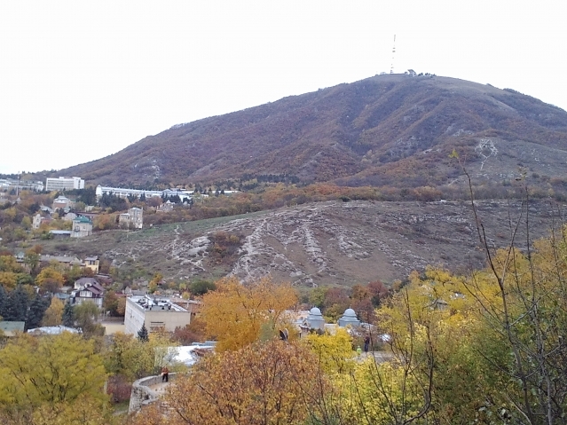 вид на поселок Горячеводск, поселок Свободы и гору Юца, в хорошую погоду видно Юцу, сзади Джуцу и позади величавый Эльбрус