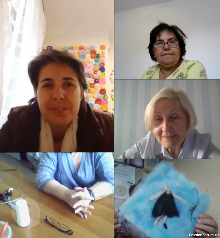 Ира не попала в кадр-убежала мужа кормить))) А Таня из Москвы нас видит, а мы ее - нет, но она активно участвует в обсуждениях.
