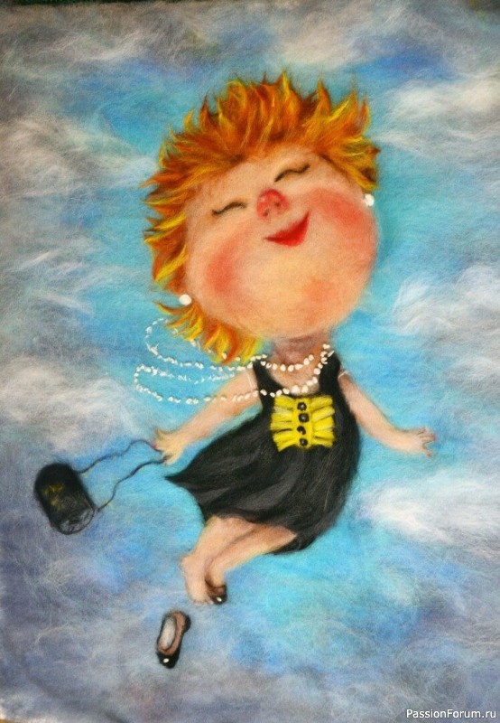 Оля показала картину из шерсти (еще не доделанную),которую она стала делать после нашей последней встречи.На этой встрече Юля давала МК по рисованию шерсти. Я и сама удивилась,что это не так сложно,как думалось. Вот и Оля вдохновилась. У нее такая красота получается! Меня очень порадовало, что МК пригодился.