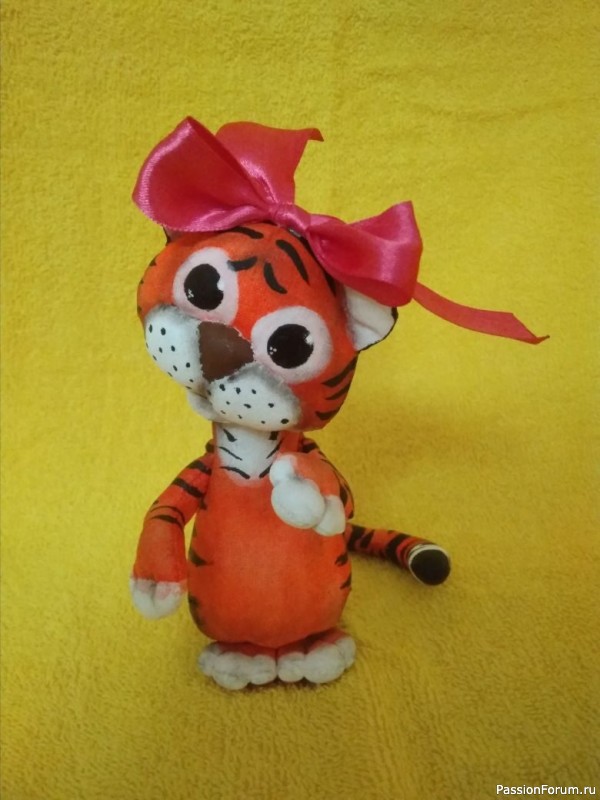 Я до болезни тоже все крутила придумывала, каких бы тигрят сделать, склонялась в том числе и к грунтованному текстилю, хотя в этой сфере нет опыта и по этому заказала рыжий мех))) но так еще ничего и не придумала. Вы справились с задачей по высшему разряду, спасибо за такую шикарную идею сшить тигрят в образах для одариваемых!!! ШИКАРНО!!!