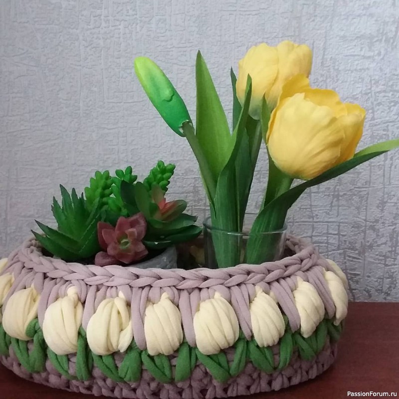 Корзиночки, вазочки, салфетки из трикотажной пряжи