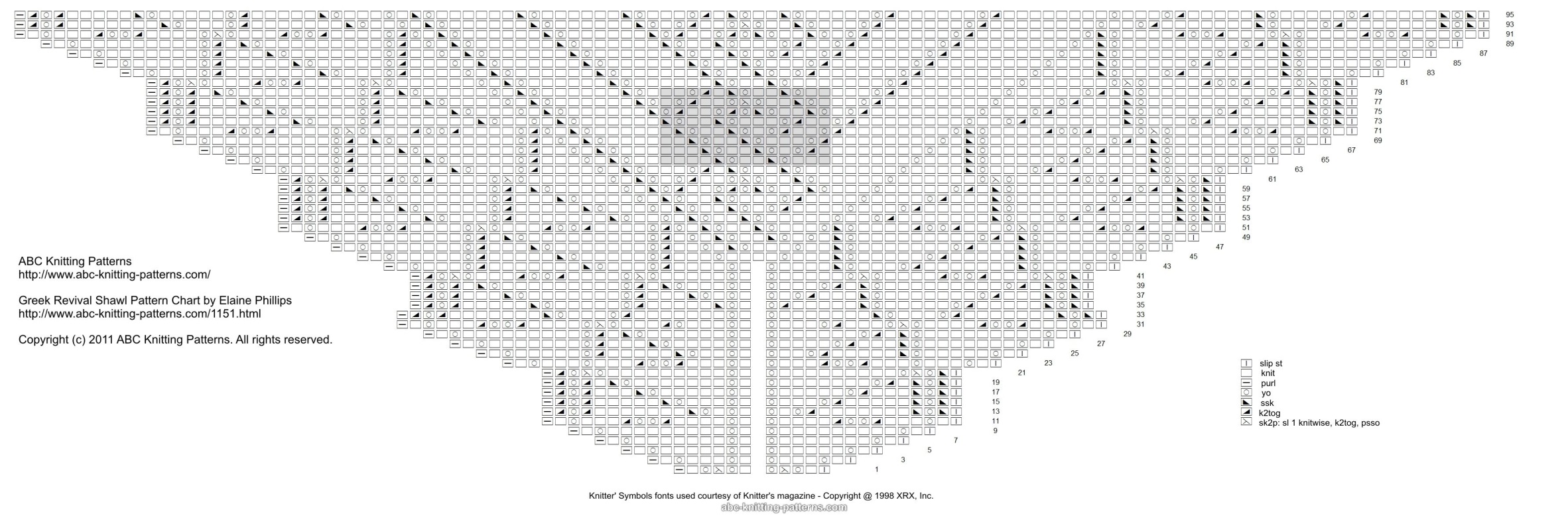 Это треугольная шаль, которая вяжется от нижней точки "треугольника" вверх. Преимущество этого в том, что вы можете сделать шаль любого размера, который вам нравится: просто прекратите добавлять ряды, когда почувствуете, что достаточно. Основная часть шали имеет стилизованный кабель, идущий по центру, с параллельными лучами, расходящимися вправо и влево. Этот образ был непосредственно вдохновлен так называемым греческим геометрическим периодом в керамике, поэтому я назвала шаль Греческим возрождением.