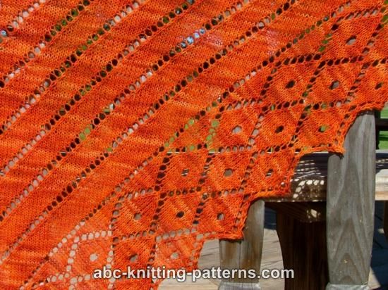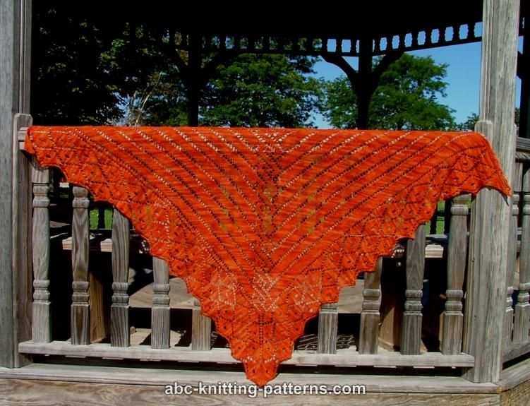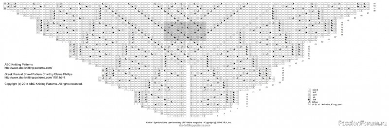Выкройка шали выполняется от нижней точки к верхнему краю и может быть уменьшена или увеличена путем изменения количества обработанных рядов.