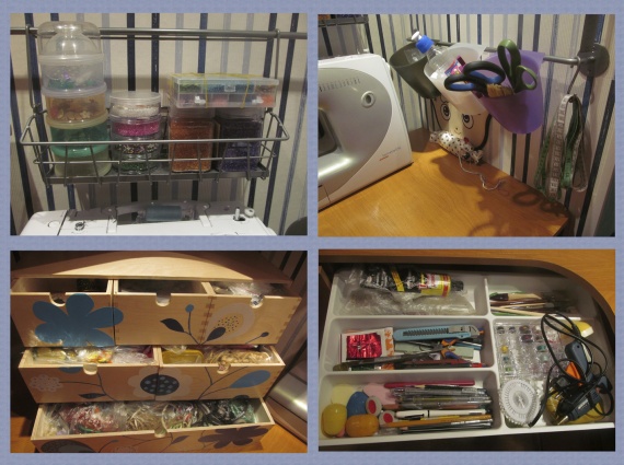 Жила-была девочка Таня. С детства она очень любила рукодельничать, а потом дарить близким подарки собственного изготовления. Но одна беда была у девочки – не было своего рукодельного уголка (по причине большого количества человек и всякой ерунды на 1 кв. метр жилплощади родителей). И плакала она горькими слезами (во сне, иногда) по поводу его отсутствия. И ютилась Таня где придется со своими, извините, приспособами, и продолжала мечтать о сказочной мастерской, где было бы уютно и столько всяких разных вещей и вещичек, что любо-дорого заниматься любимым делом… Прошло время. Выросла девочка. На прибавившихся квадратных метрах хватило места и мужу, и детям, но всё никак не хватало уголку. Конечно, с руками да с идеями и гладильная доска – мастерская, и рыбацкий стульчик – трон… Но мечта-то никуда не делась! И решила тогда теперь уже тётя Таня сначала хотя бы нарисовать стол своей мечты. В волшебном Интернете не нашла она никаких подсказок, и пришлось выдумывать самой – но зато то, что хочется.