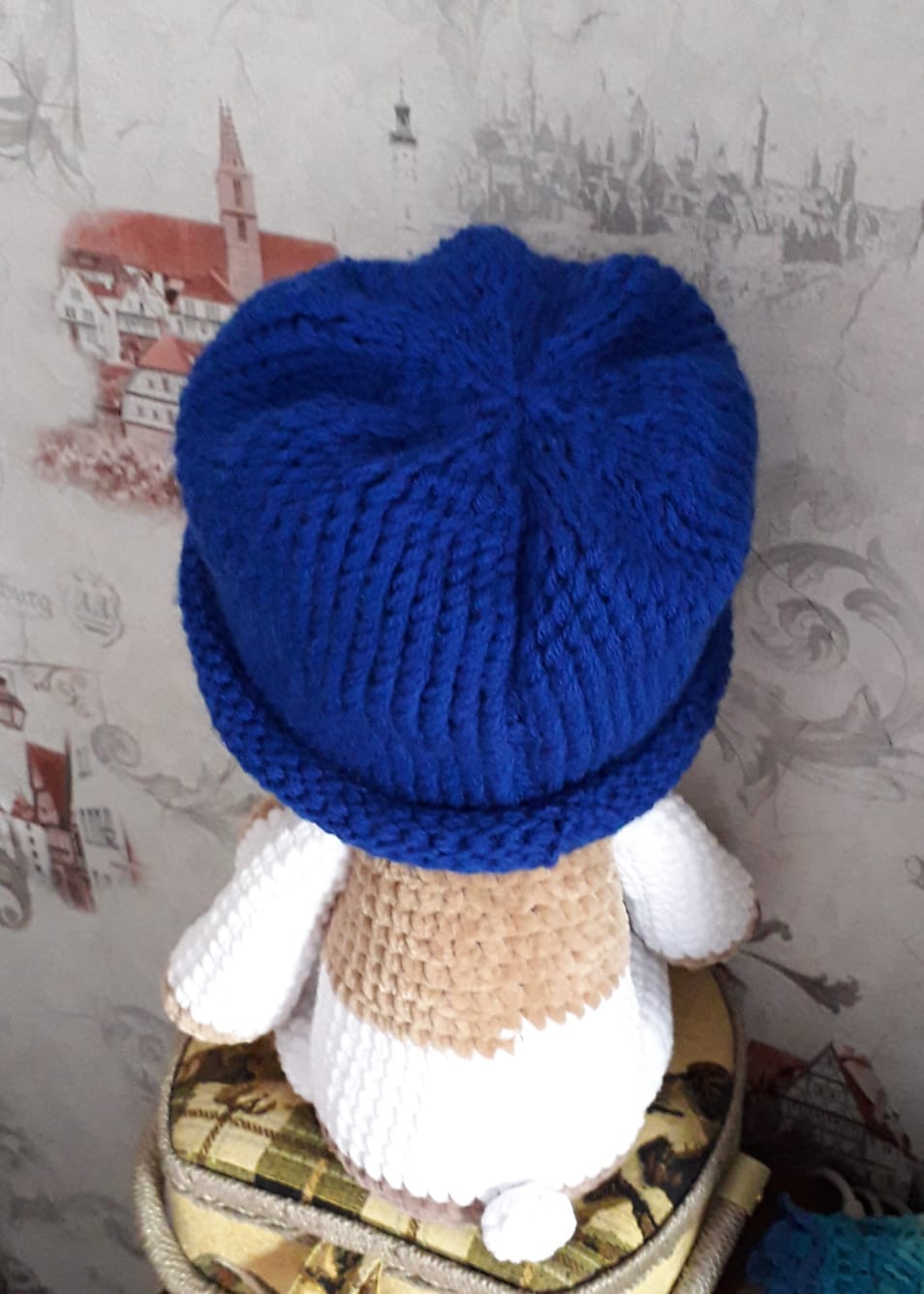 Как всегда, с примеркой помогал мой любимый плюшевый Мишаня. Ободок-подворот получился произвольно, его можно уменьшить спереди, оставляя сзади или одной формы,
