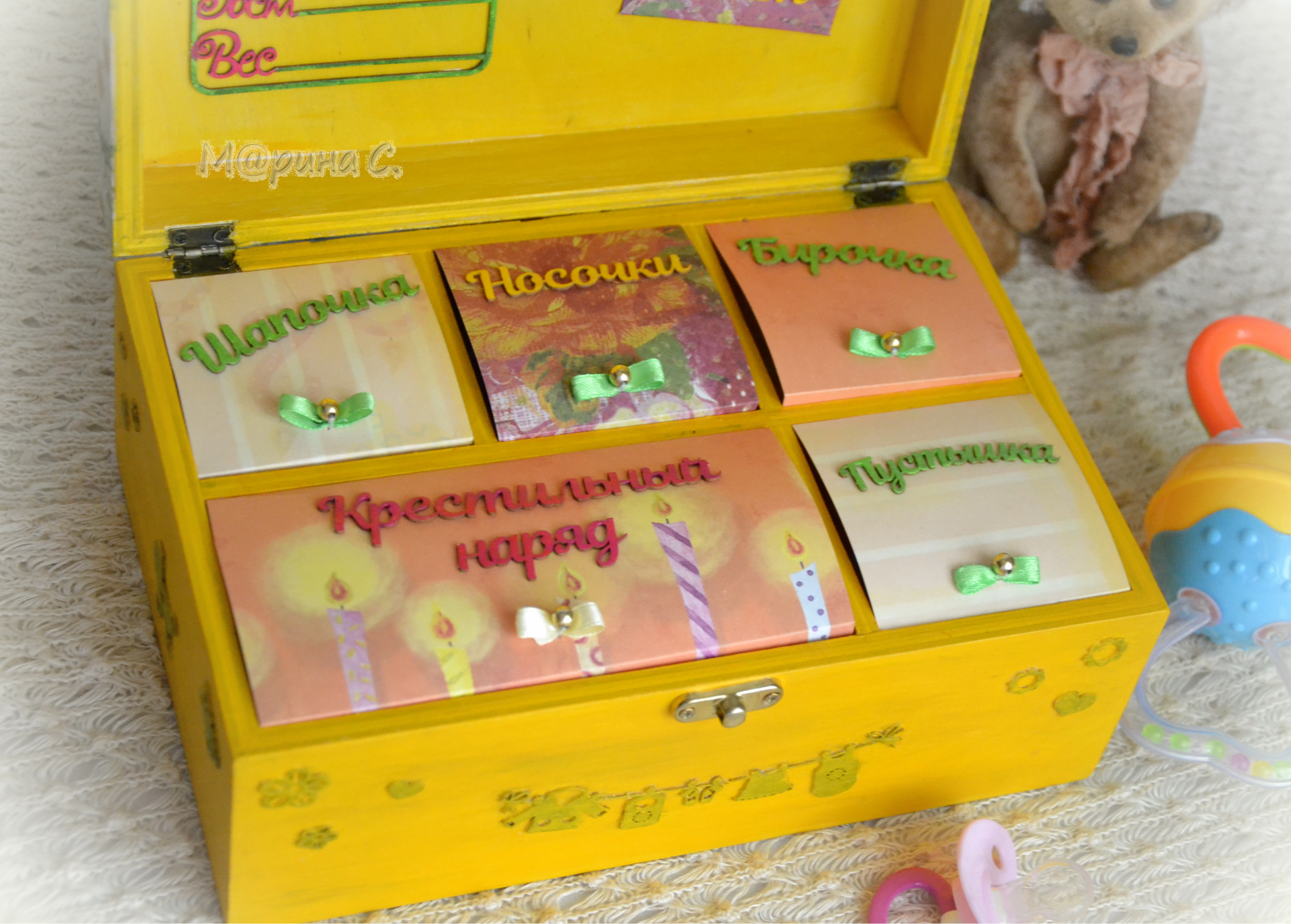 Ну и по этому поводу сочинились еще шкатулочки "Мамины сокровища. Одна , естественно, для внучки